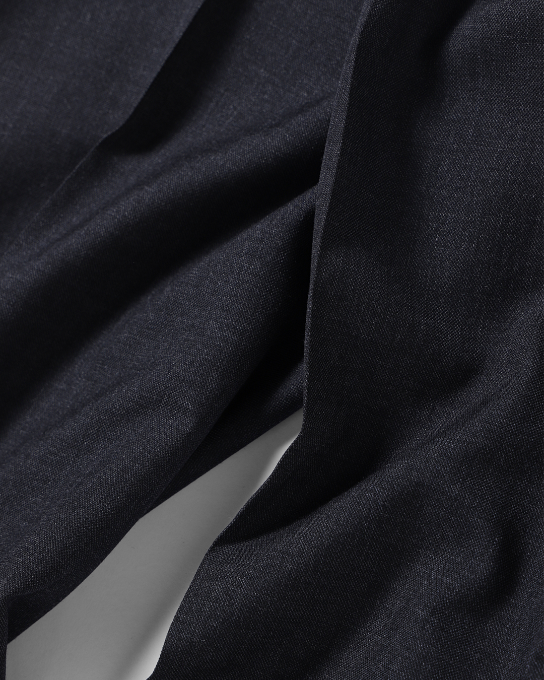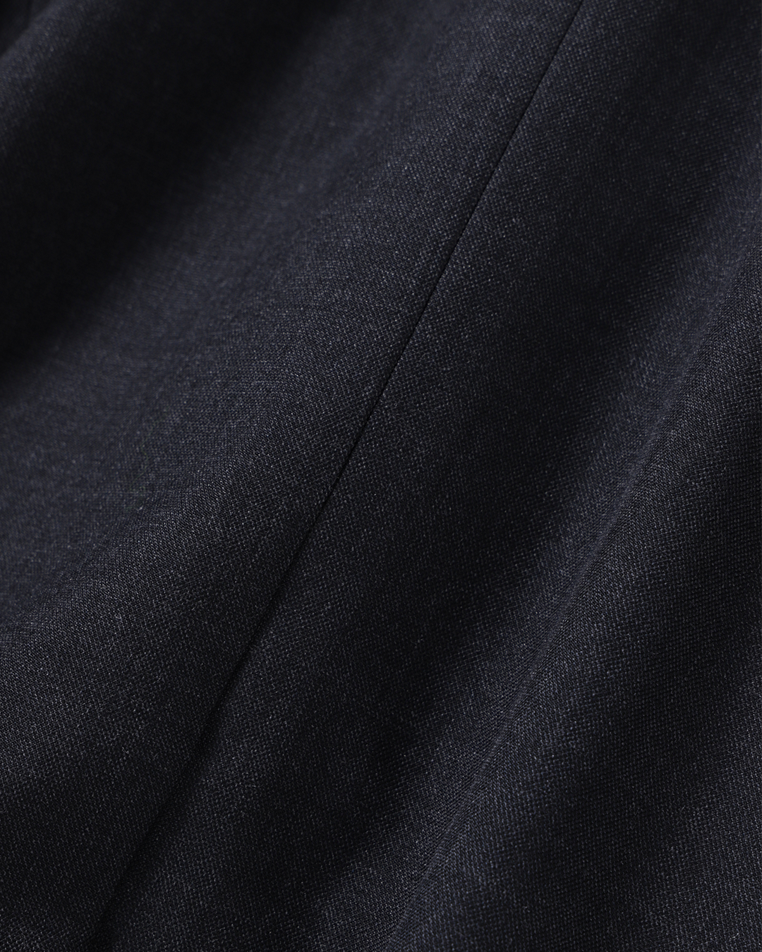 素材は、1931年英国ウエストヨークシャーにて創業された伝統的な家族経営の生地会社、"Marton Mills社" のウール×ポリエステルのシャークスキンテキスタイルを使用。