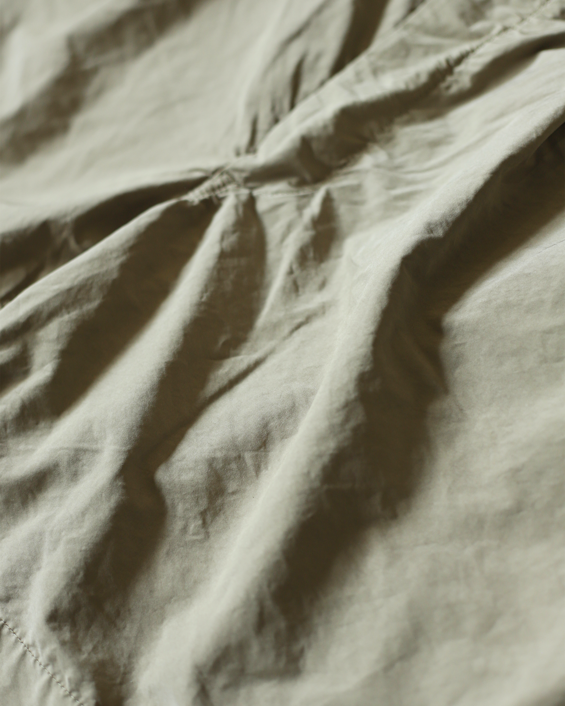 素材の縮率(洗濯などでの縮みの度合い)が異なると、長く使った際に縫い目に負荷がかかるためあえて同一素材で統一することで型崩れや引き攣れを防止しています。