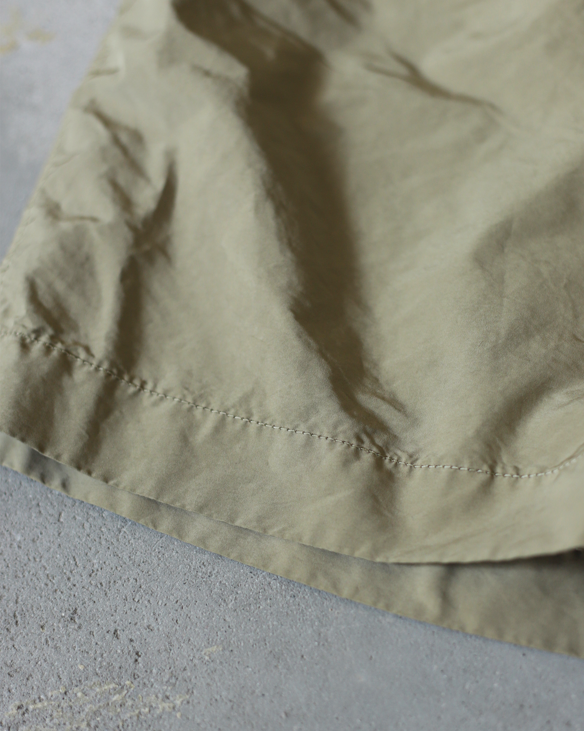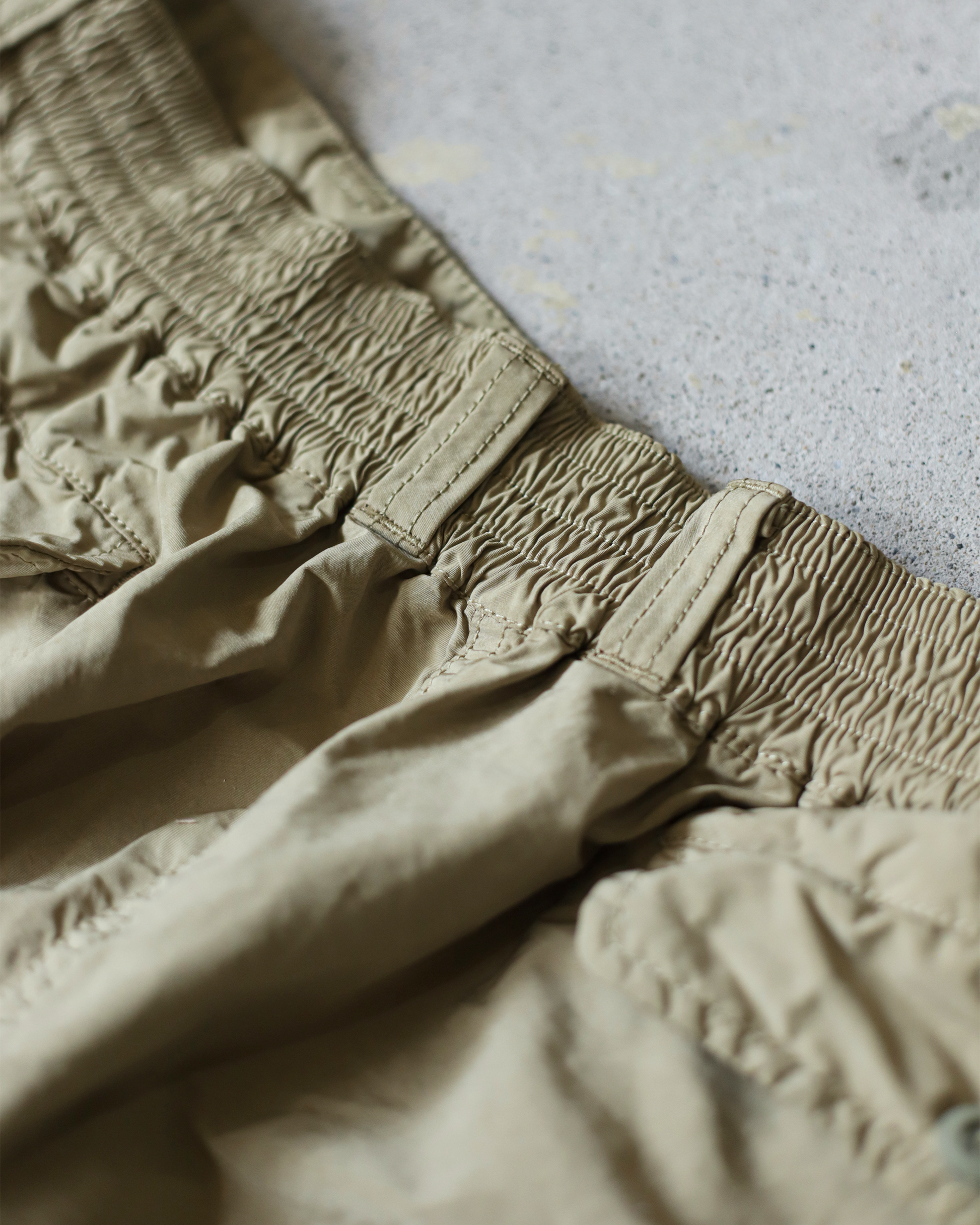 オリジナルのM52では内向きに畳まれたインタックが用いられていますが、この"Field Dry Shorts"ではあえて外向きのアウトタックに変更。