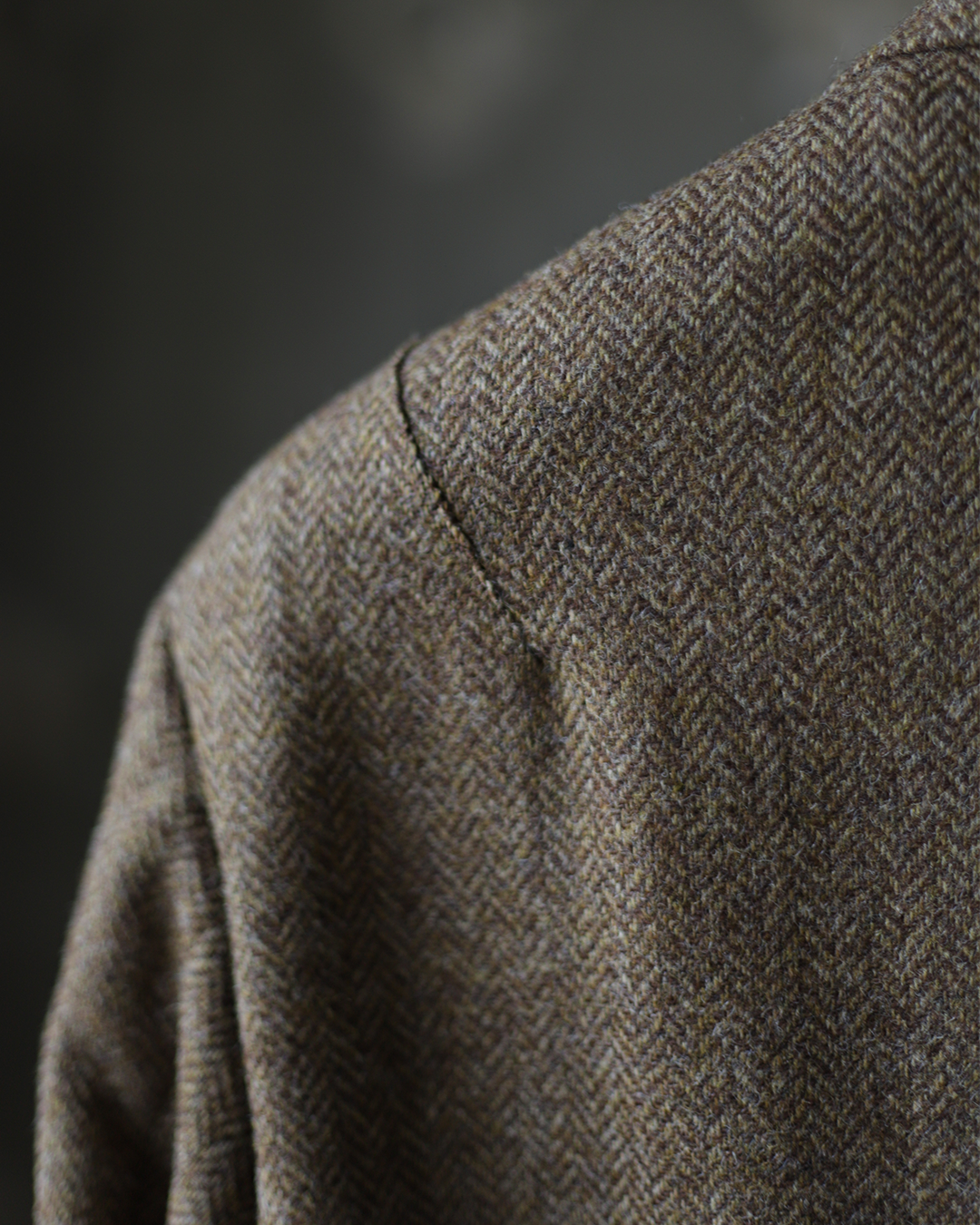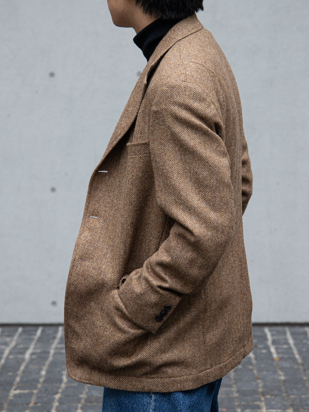 当アイテムは、従来のツイードジャケットにありがちだった、固く重い、四角いシルエットから脱却し、柔らかく丸みがあり体に馴染むシルエットを構築しています。