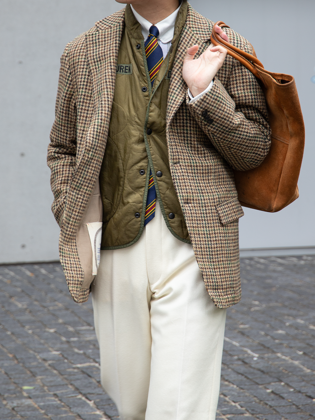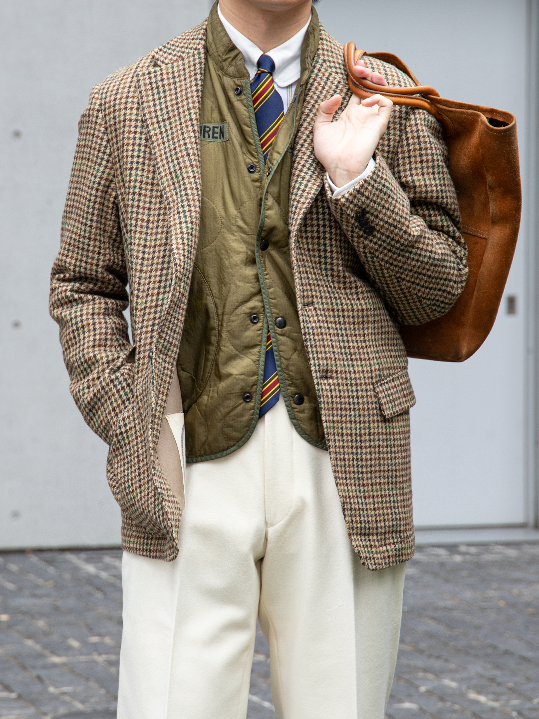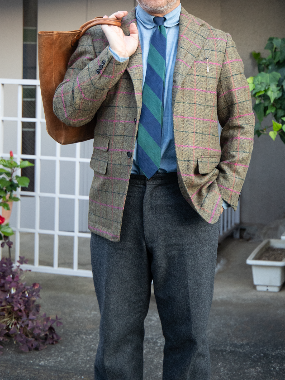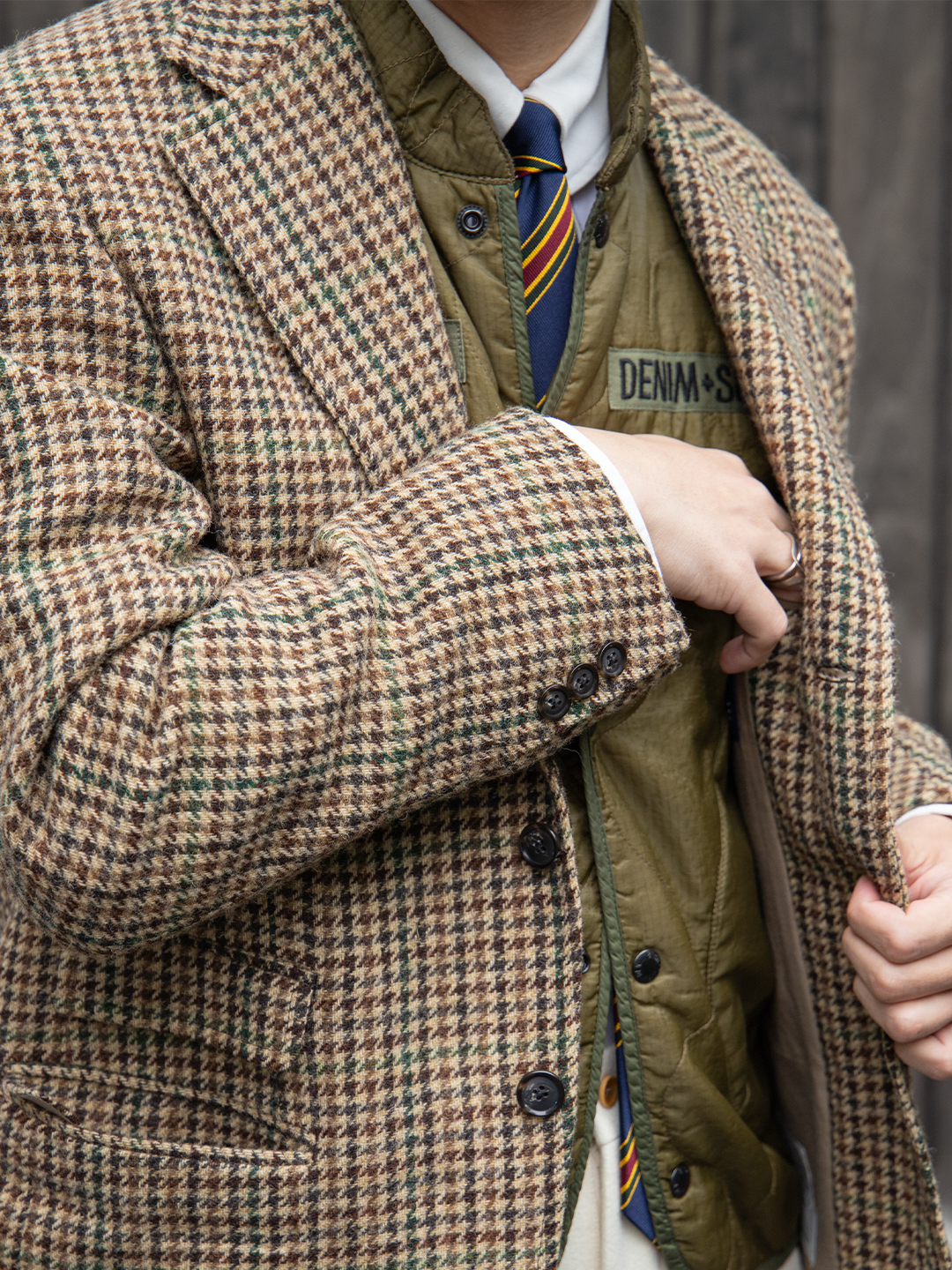 ハッキングジャケットとは、英国乗馬の歴史と共に発達したスポーツディティールを含めたツイードジャケットのこと。