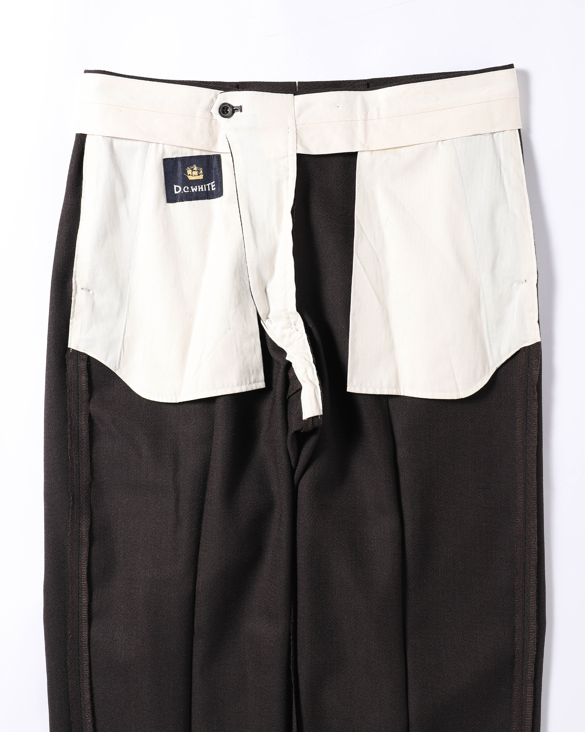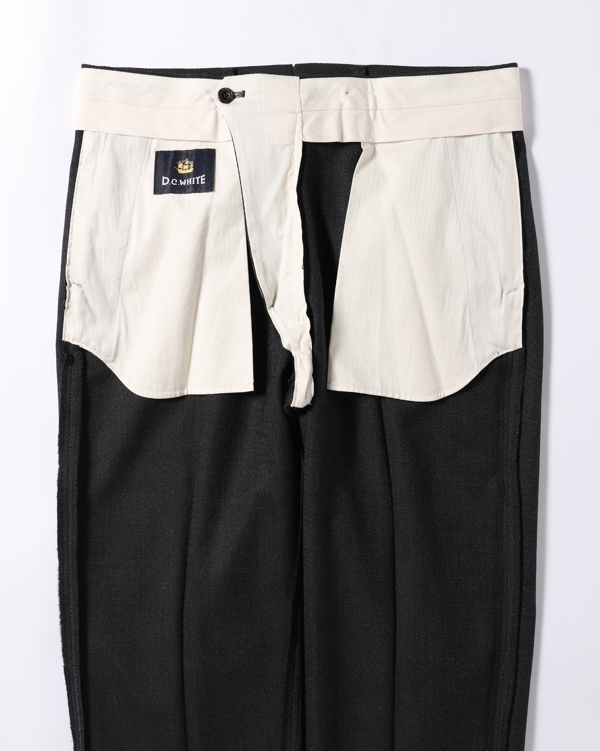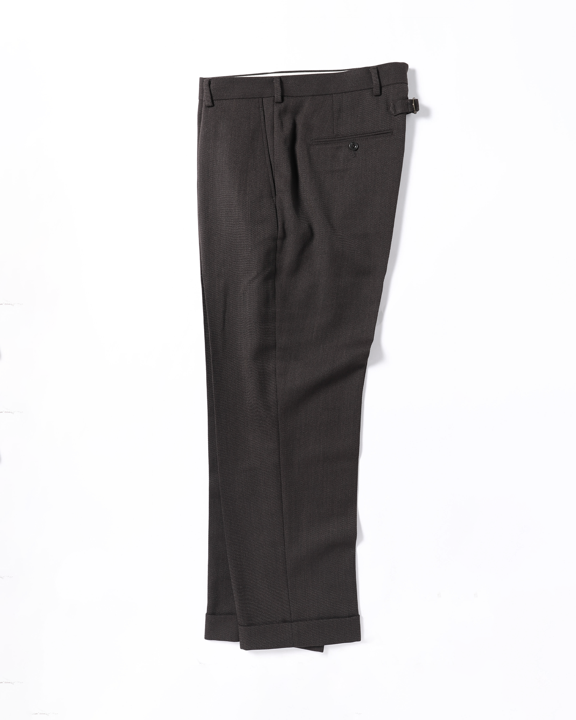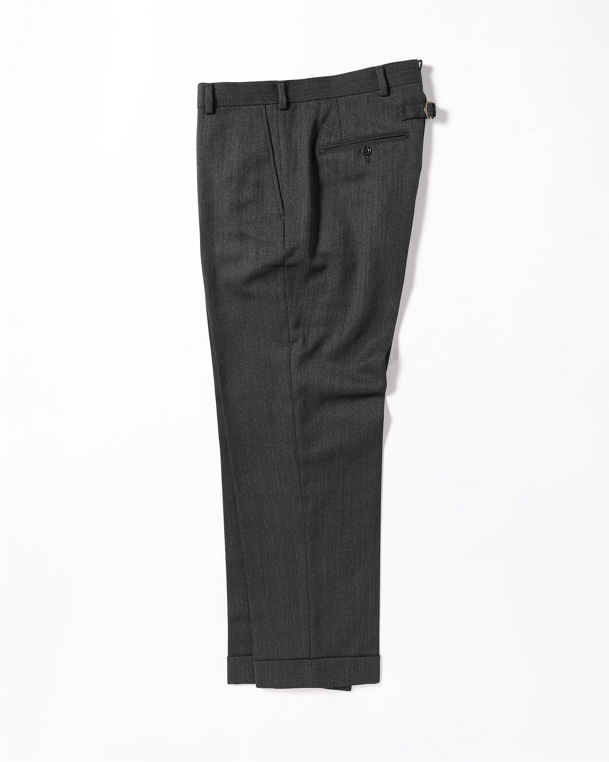 裾仕様については、シューズとパンツの境界線を強調しそれぞれの存在感を共存させることが出来るやや広めのダブルとなっています。