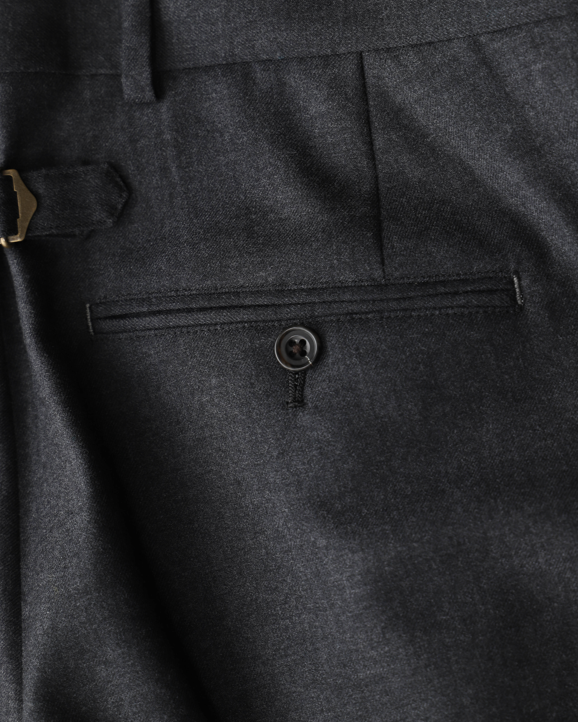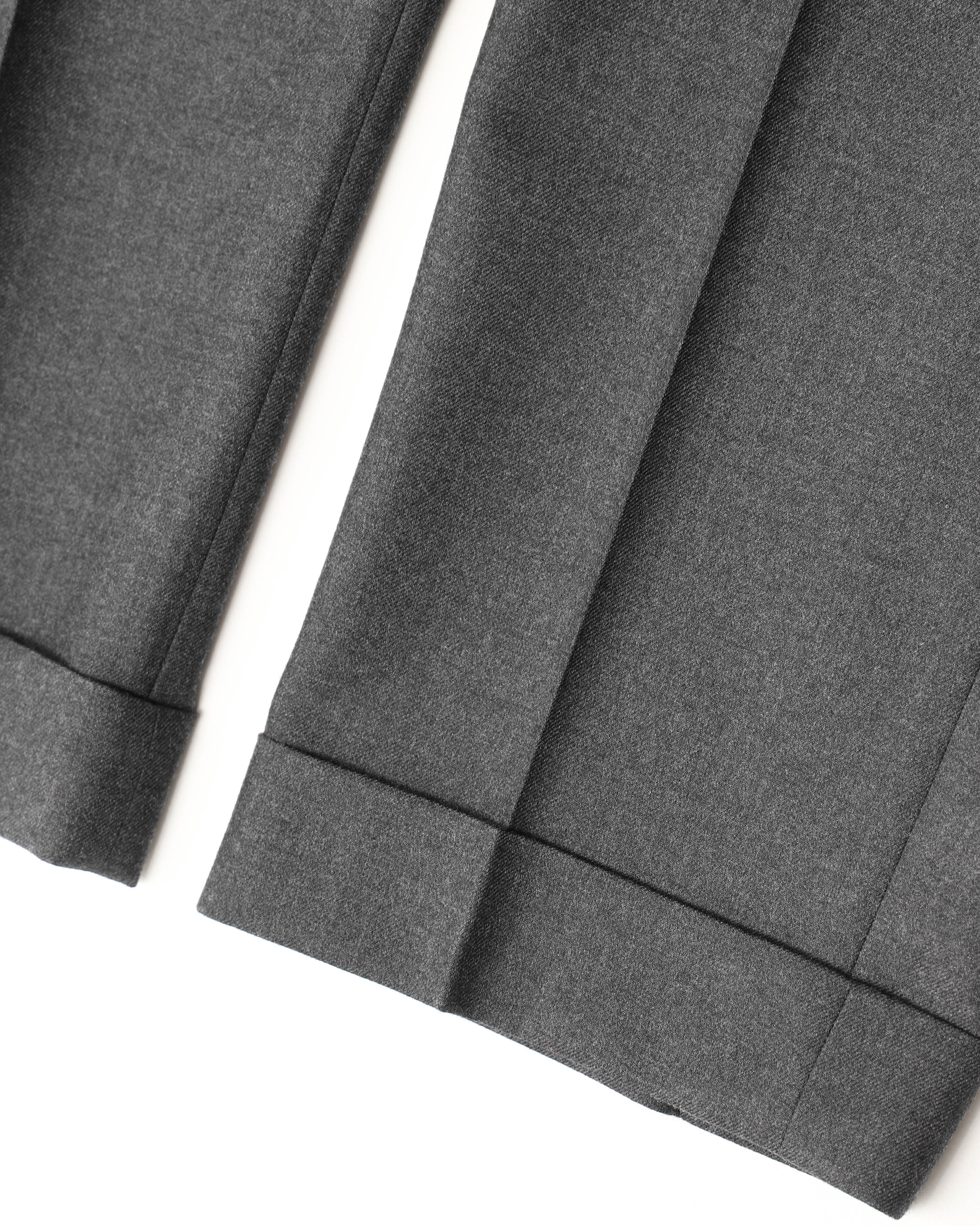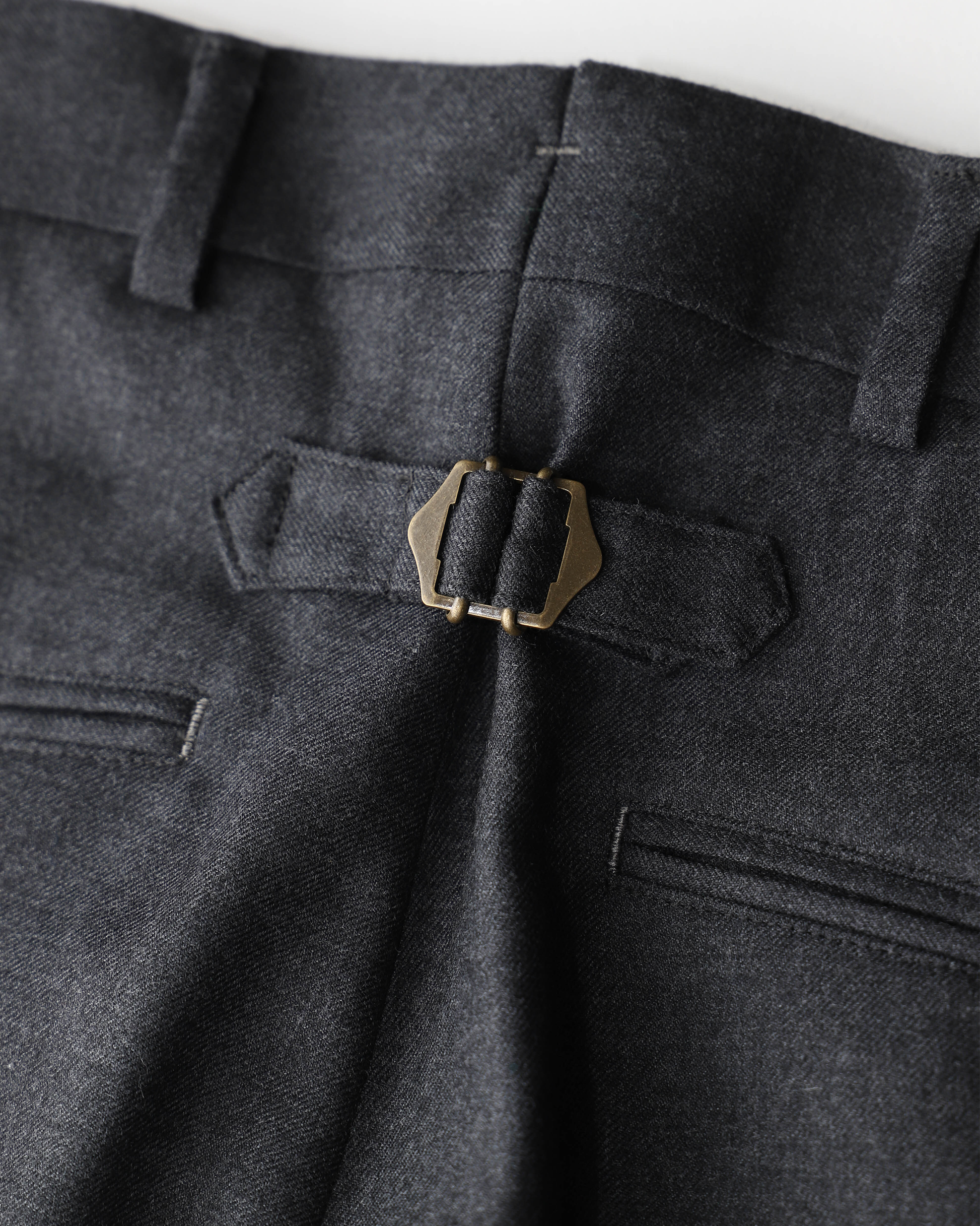 当モデルには、ウールトロピカル素材を採用。肌離れが良く通気性に優れた仕様ながらも、適度なウェイトと控えめな光沢感がトラウザーとしての美しさを保ちます。