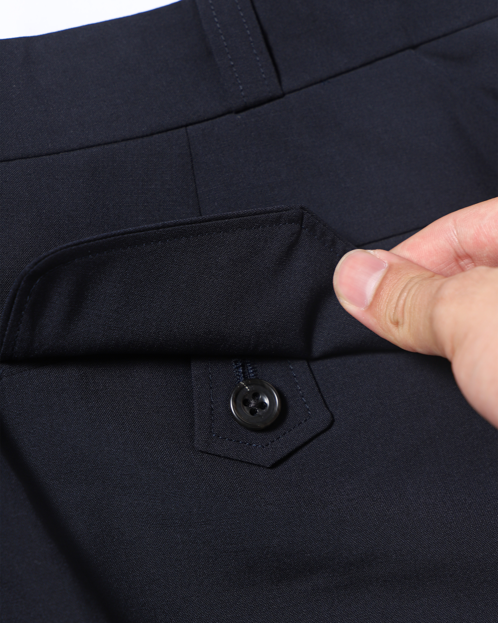 さらに、バックポケットには丸みのあるフラップカットを施しカジュアルな中にも上品さを加えました。
