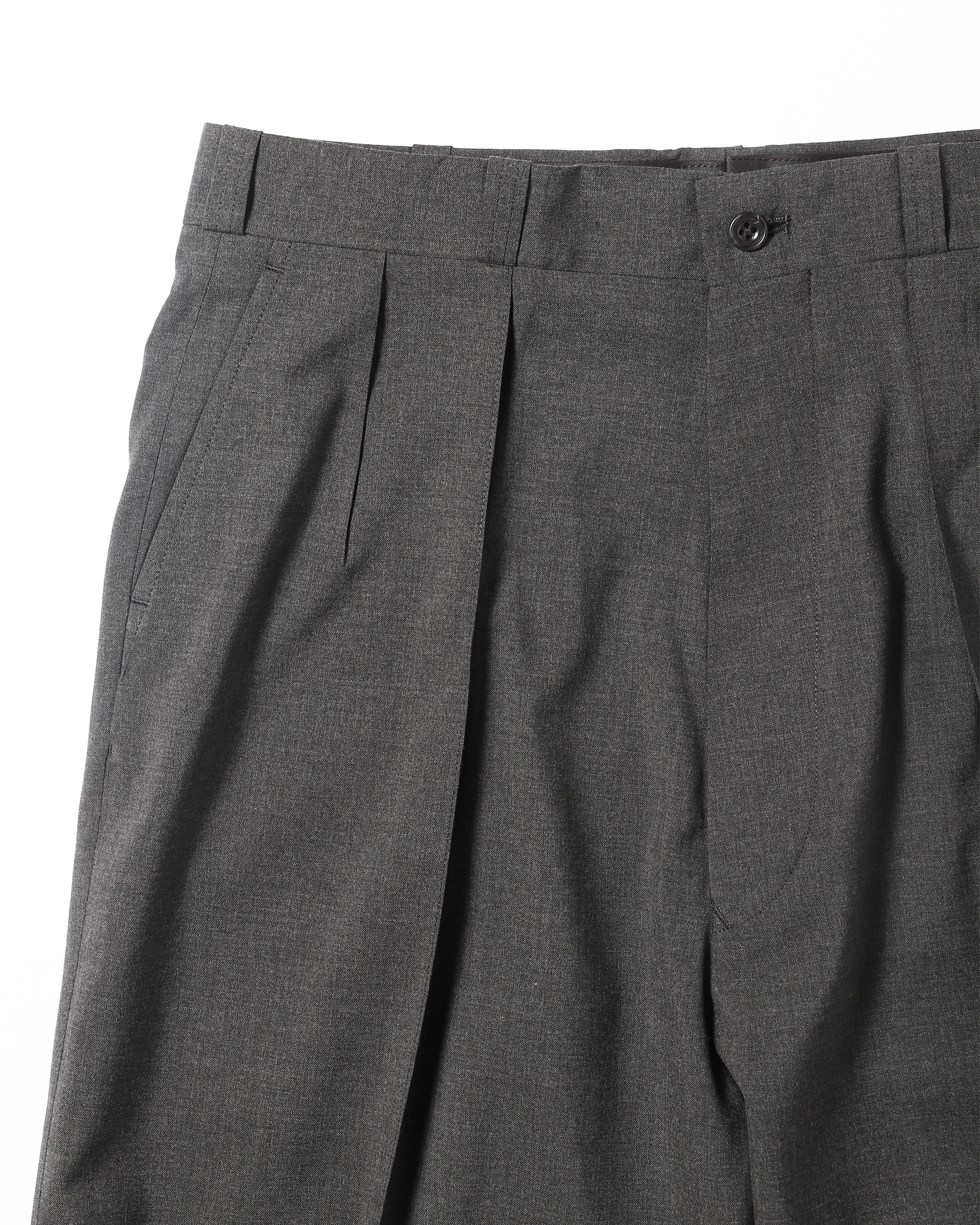 シルエットはフロントに2タックを入れたゆとりのある設計。