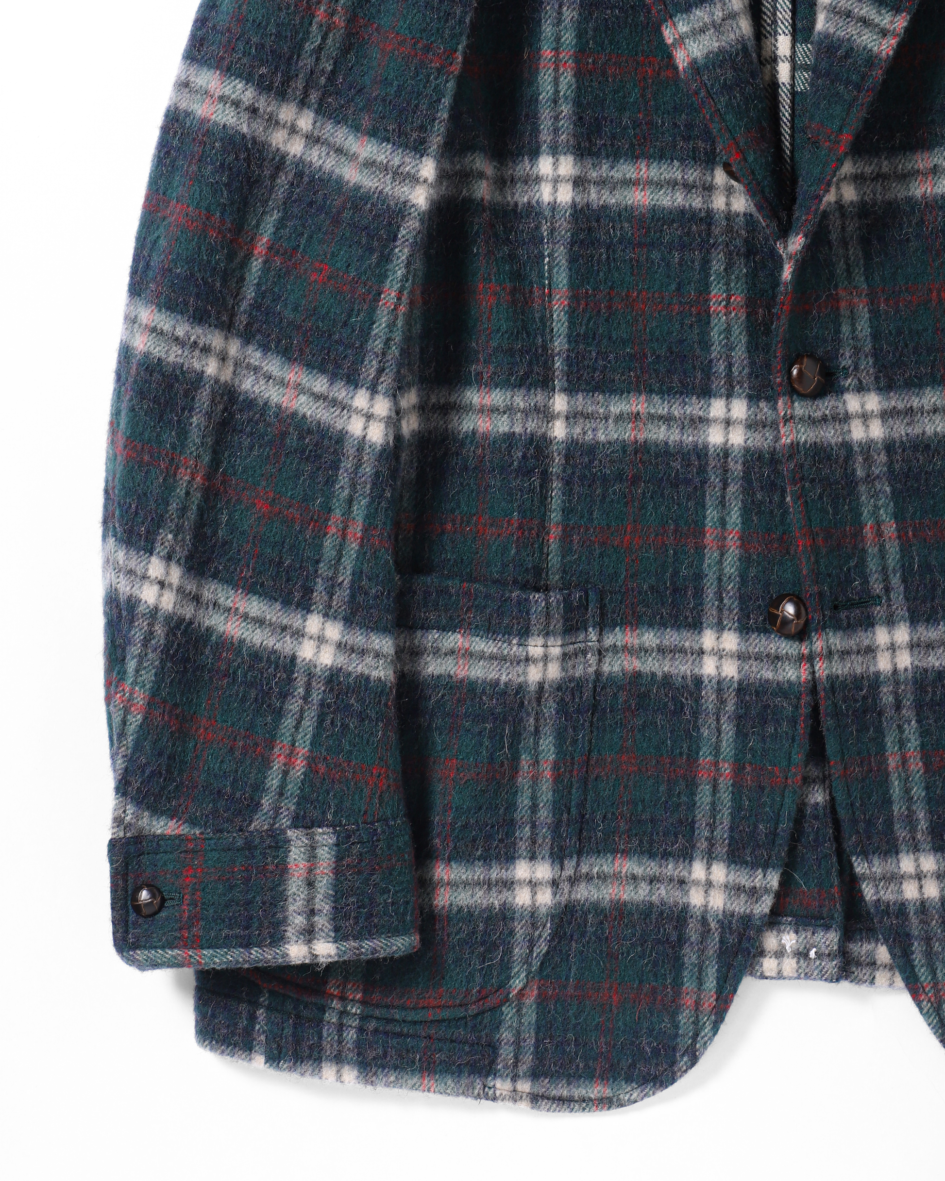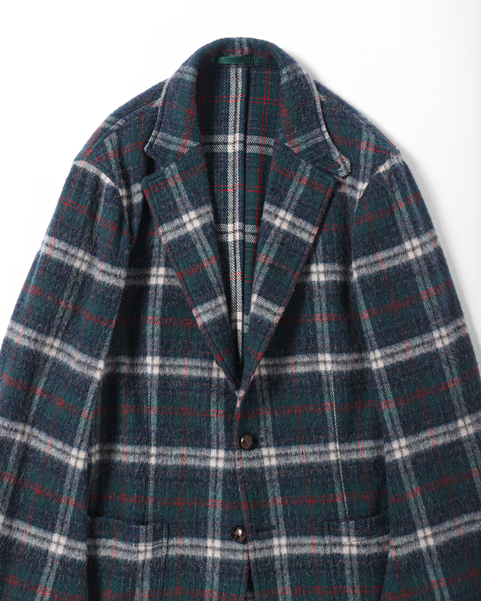 そこにアルパカの長い繊維を加えることで独特のシャギー感を演出し見た目にも暖かい豊かな表情を生み出しました。