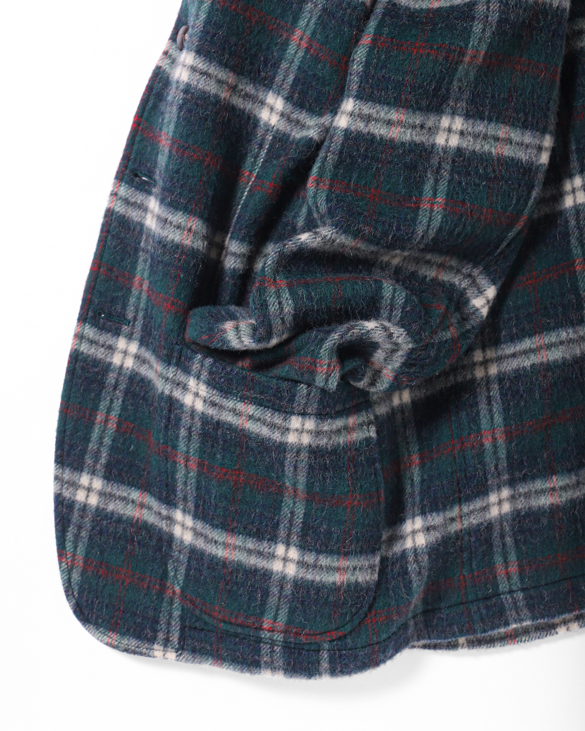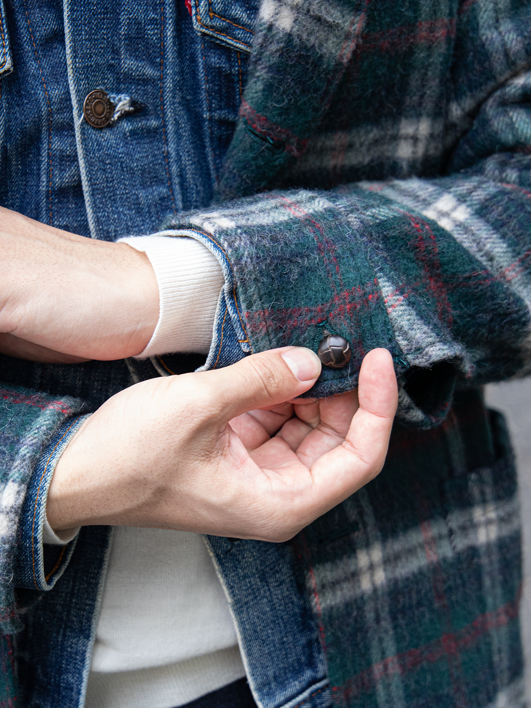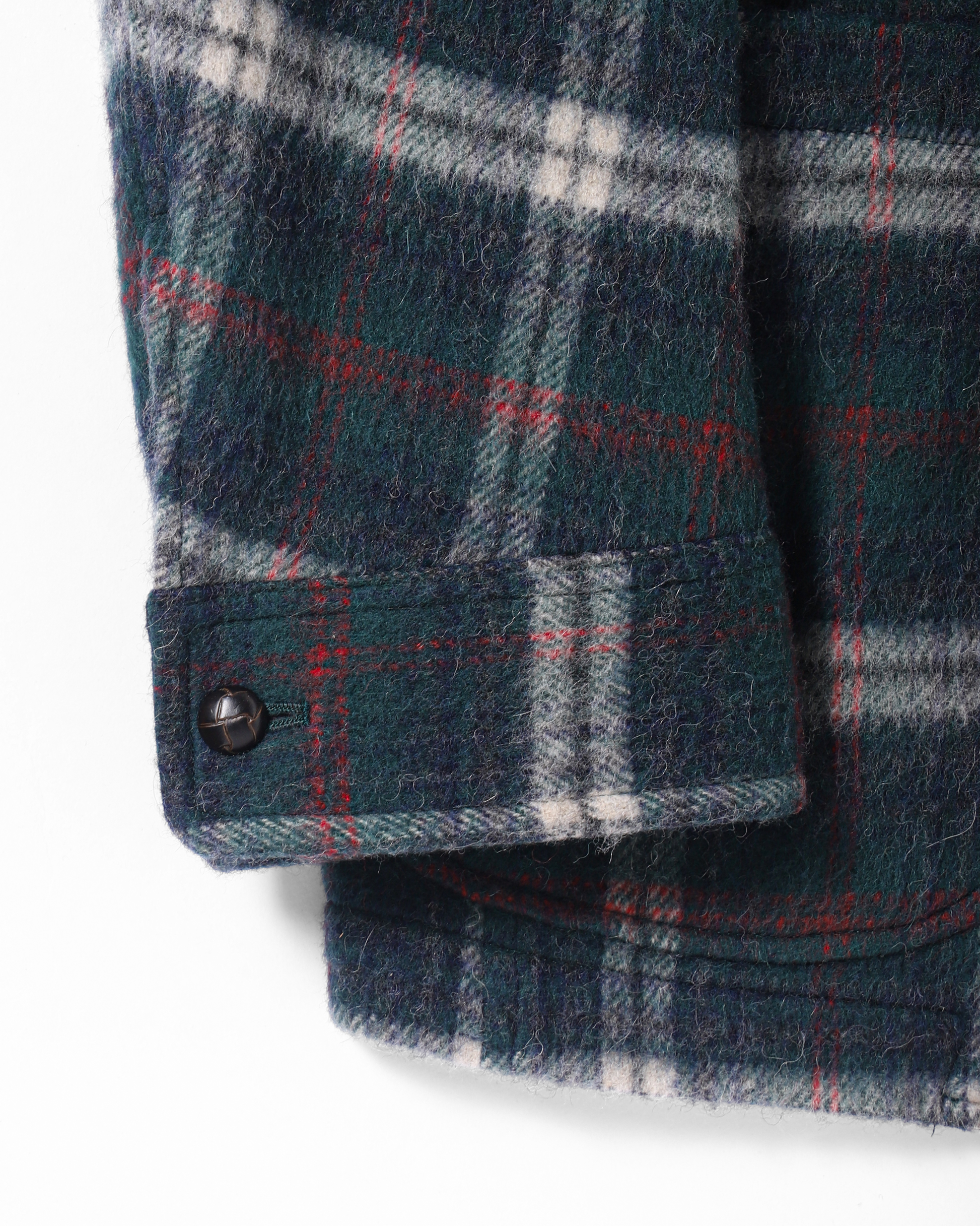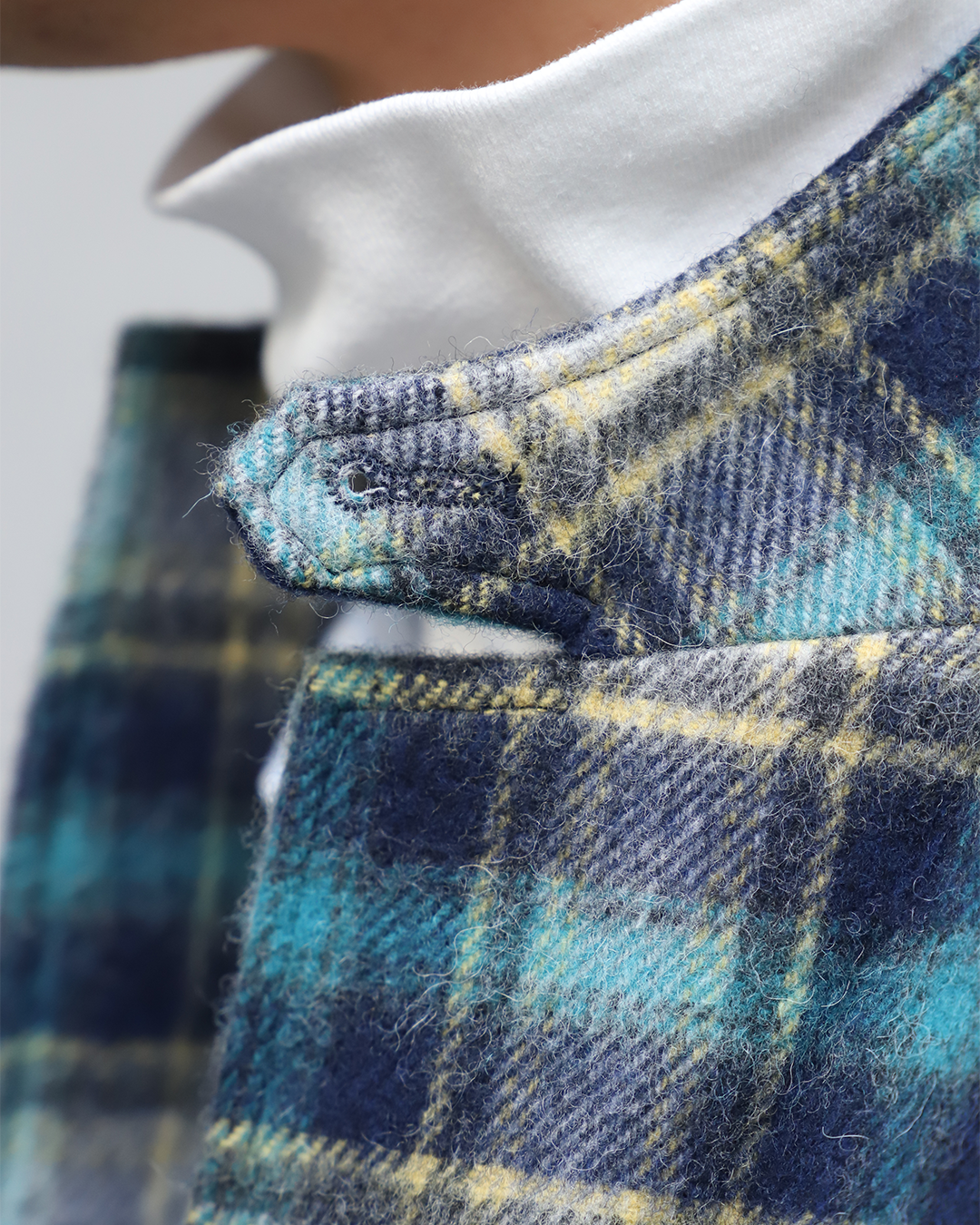 デザインには、アメリカのアウトドアカルチャーで愛されたパターンをベースに、レザーのくるみボタンやチンストラップ、カフス袖といったワーク由来の意匠を採用。