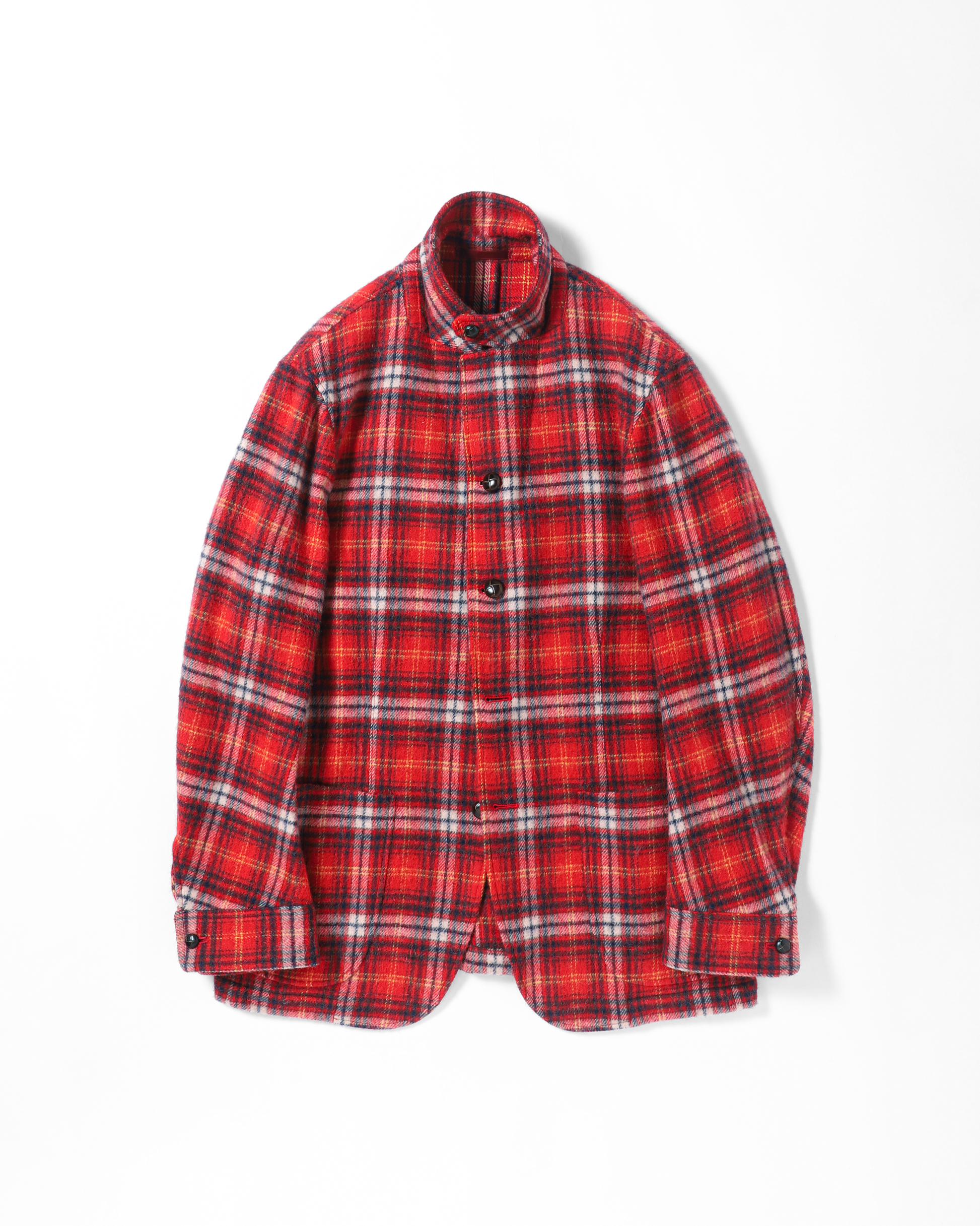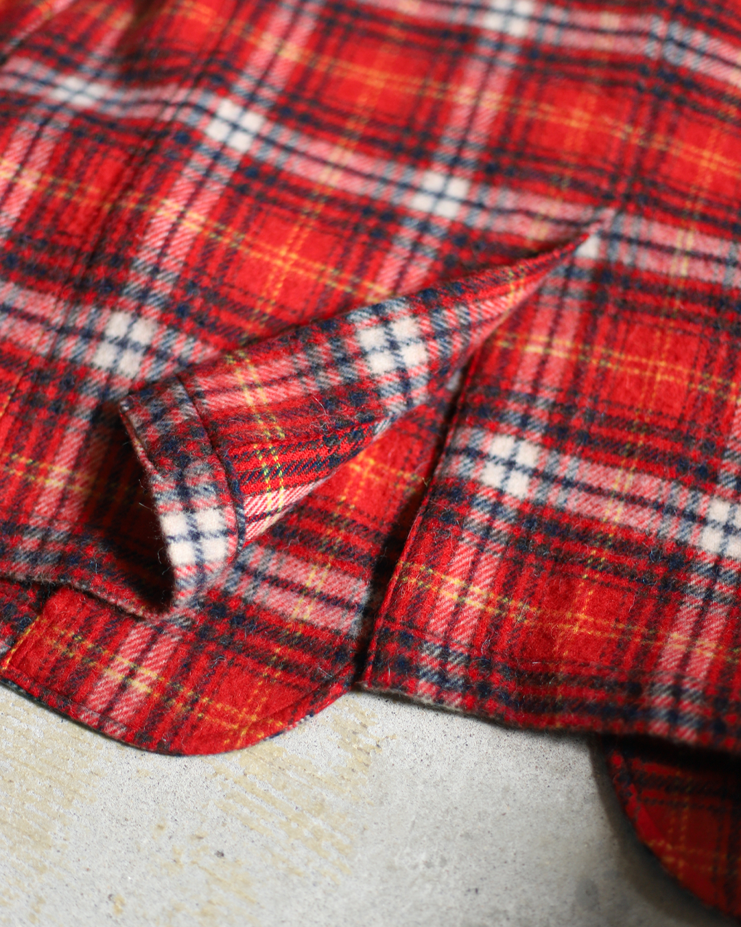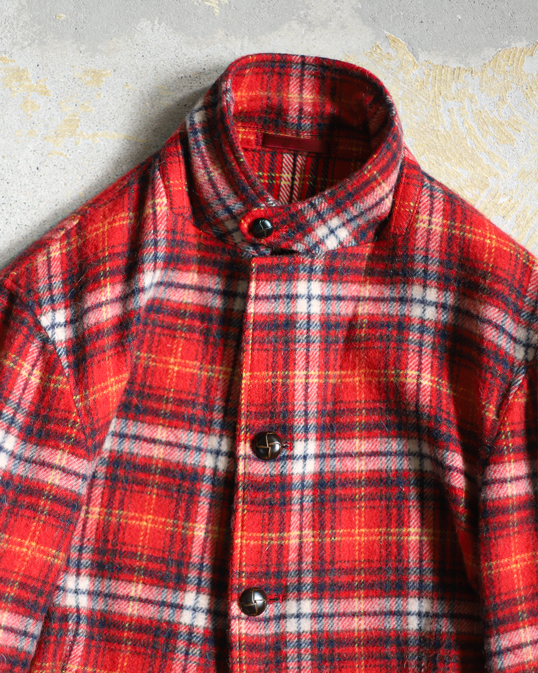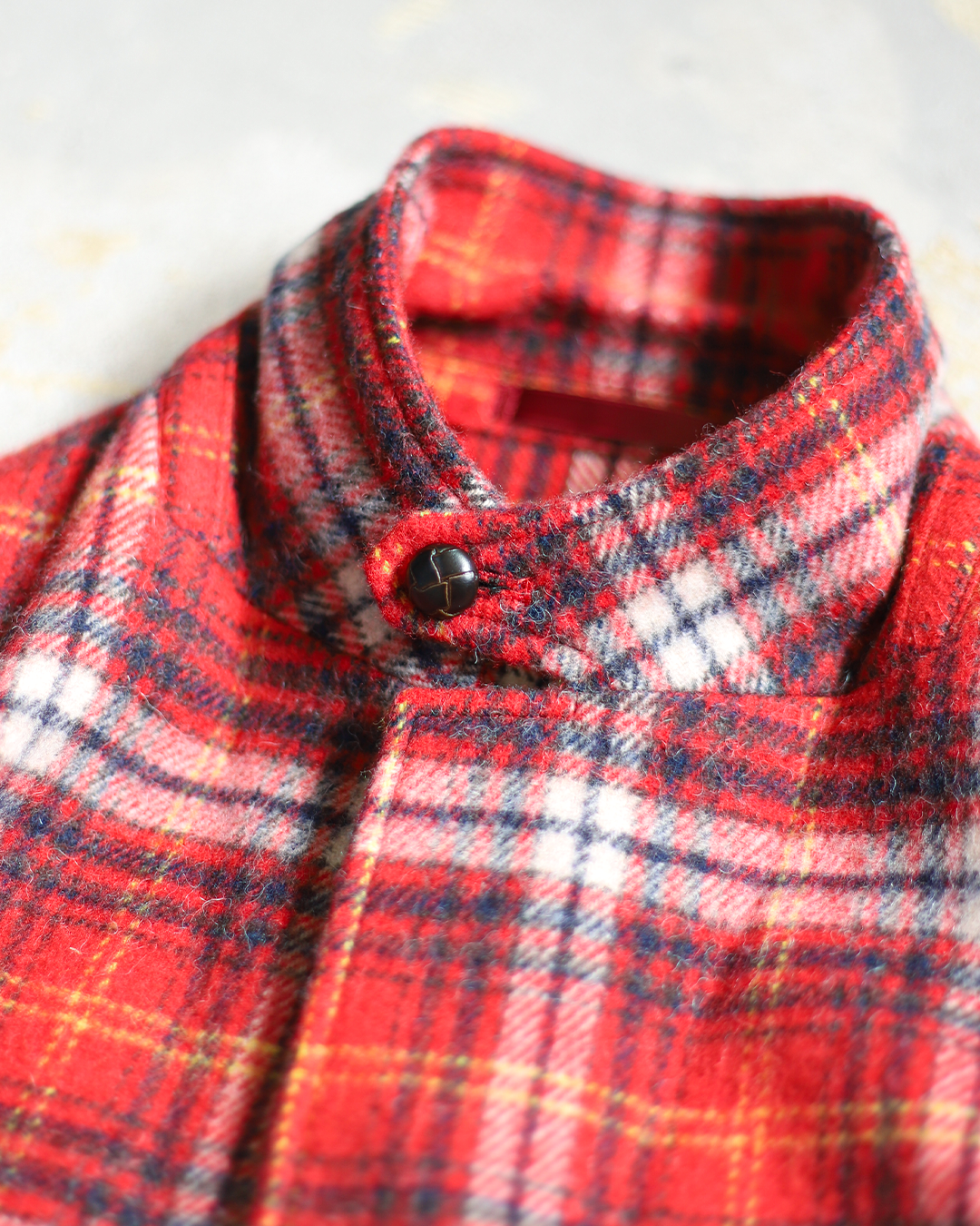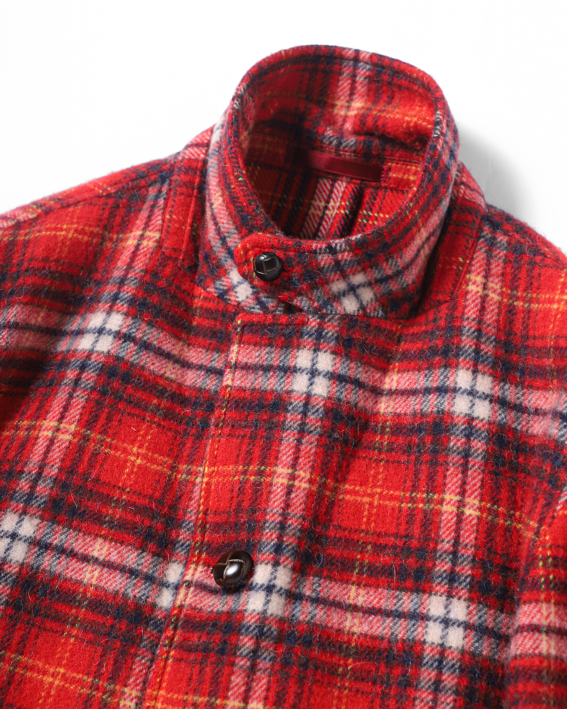 鮮やかな赤を基調としたチェックは冬の白銀の景色に映え、装いに鮮烈なアクセントを与えます。