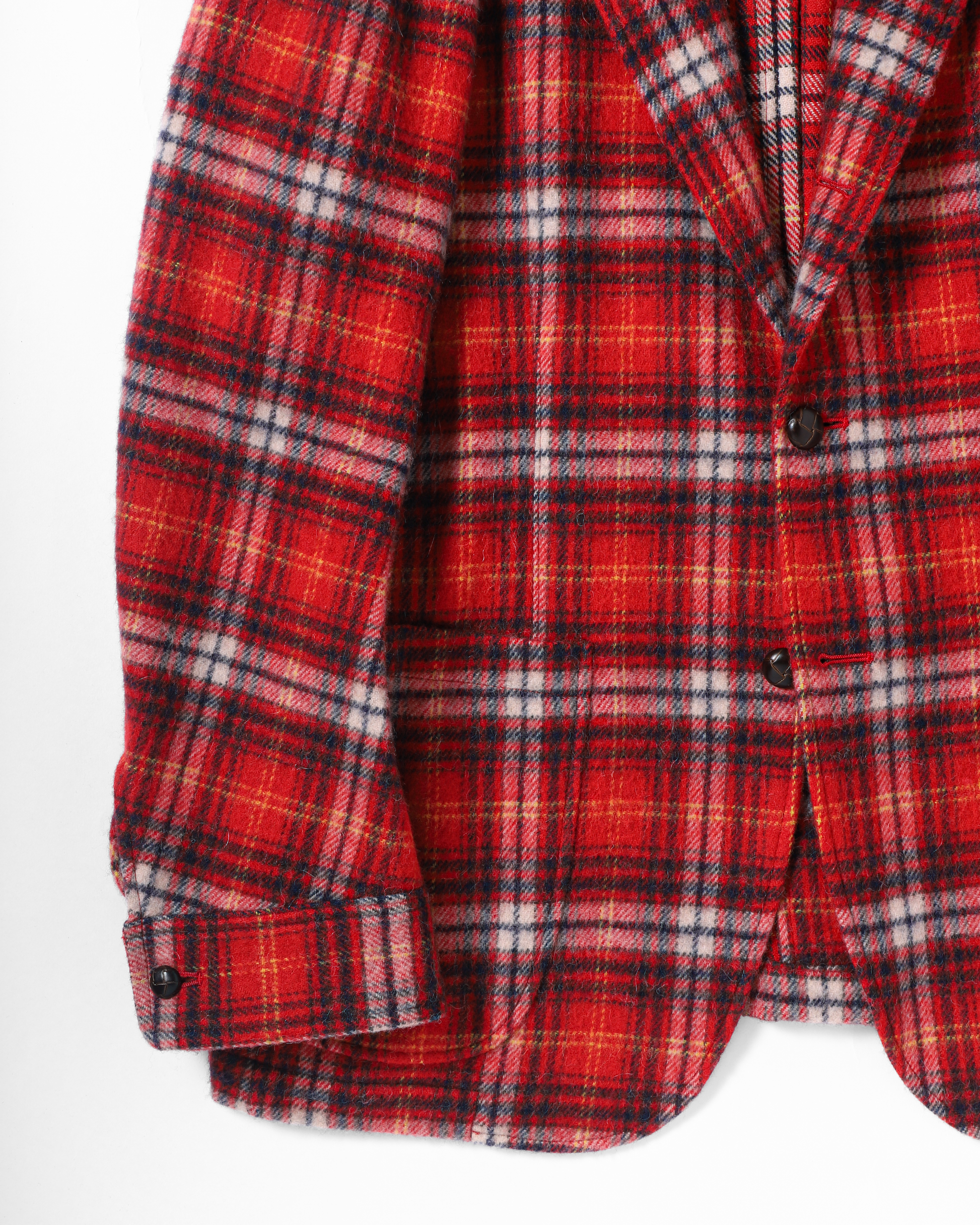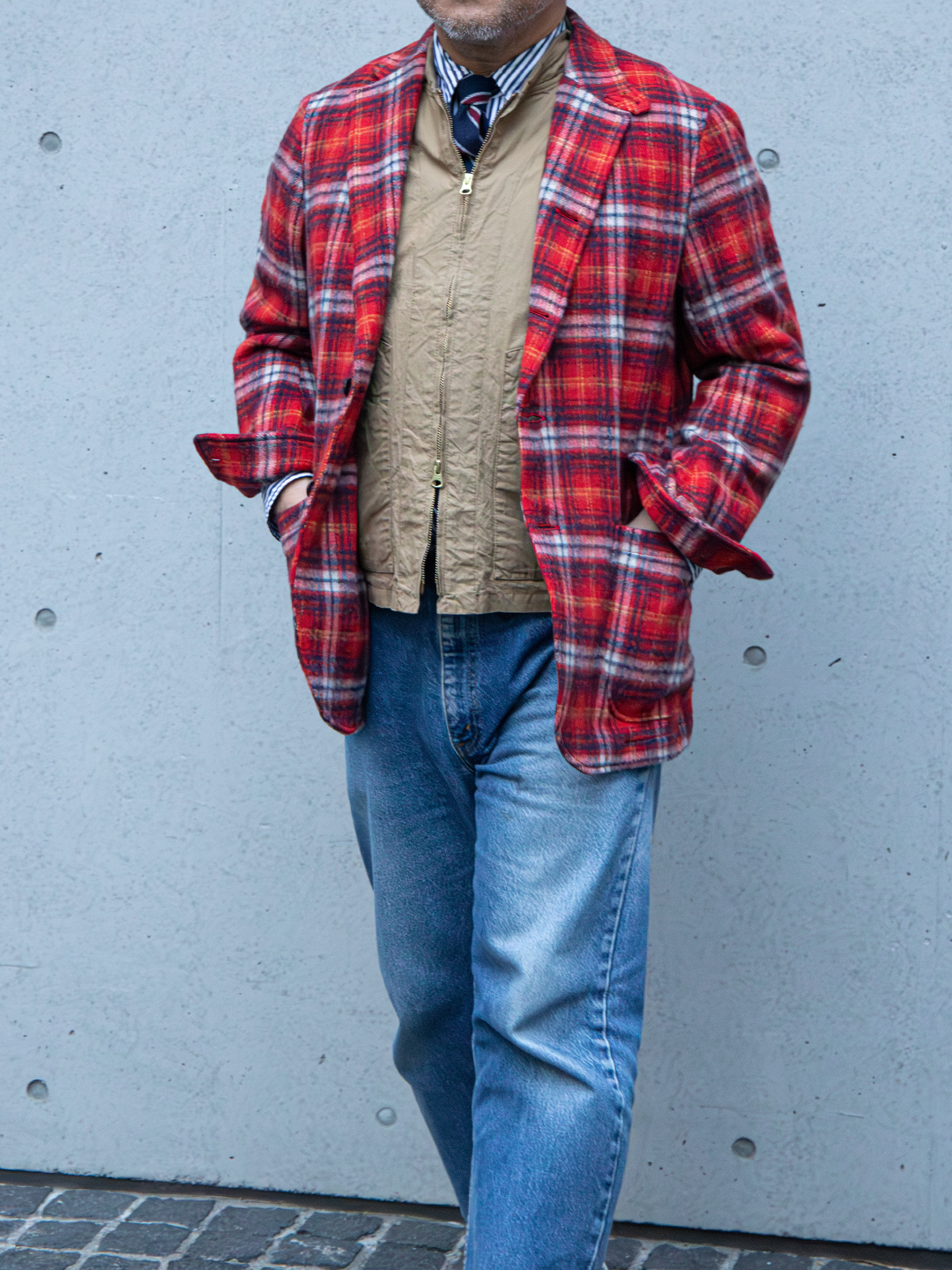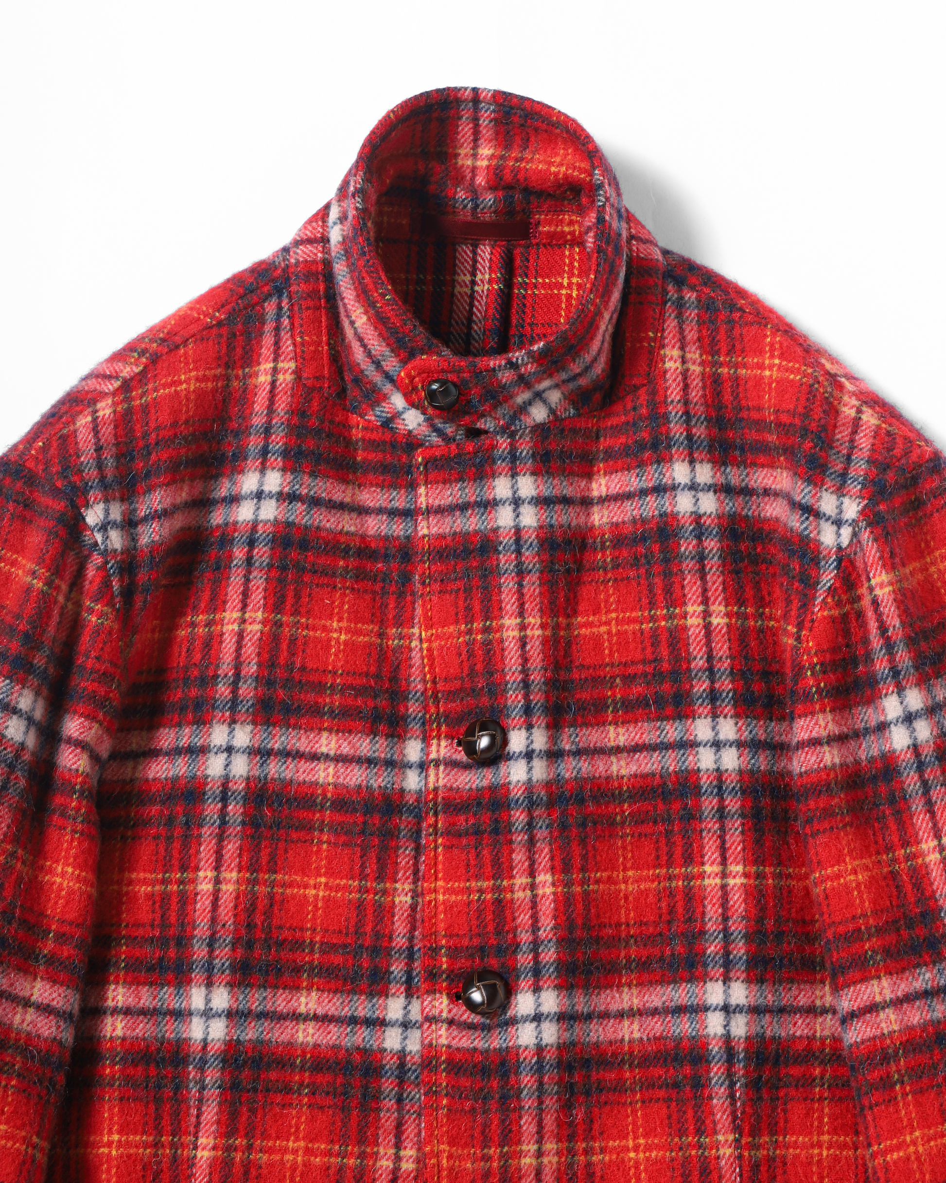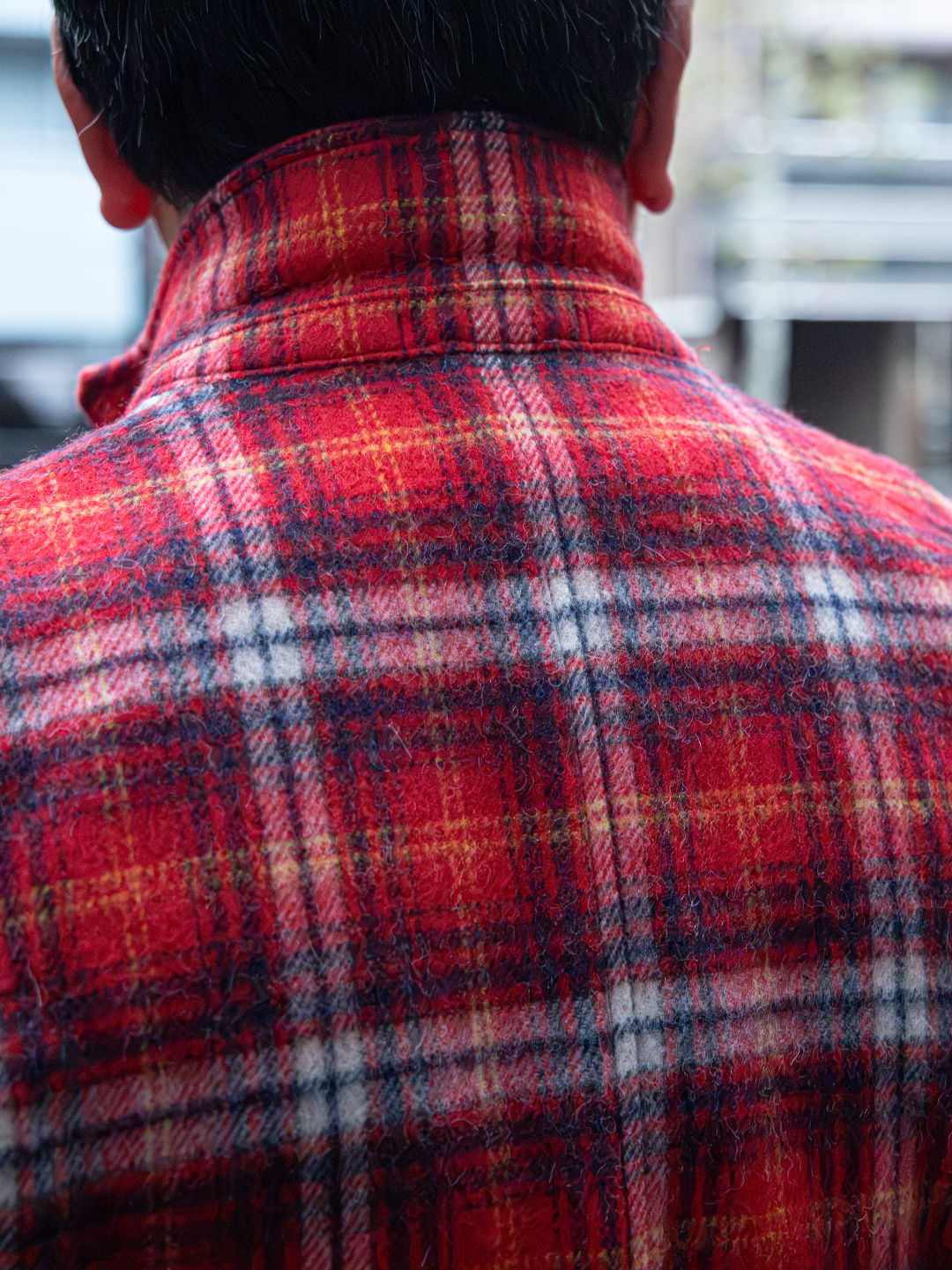 鮮やかな赤を基調としたチェックは冬の白銀の景色に映え、装いに鮮烈なアクセントを与えます。