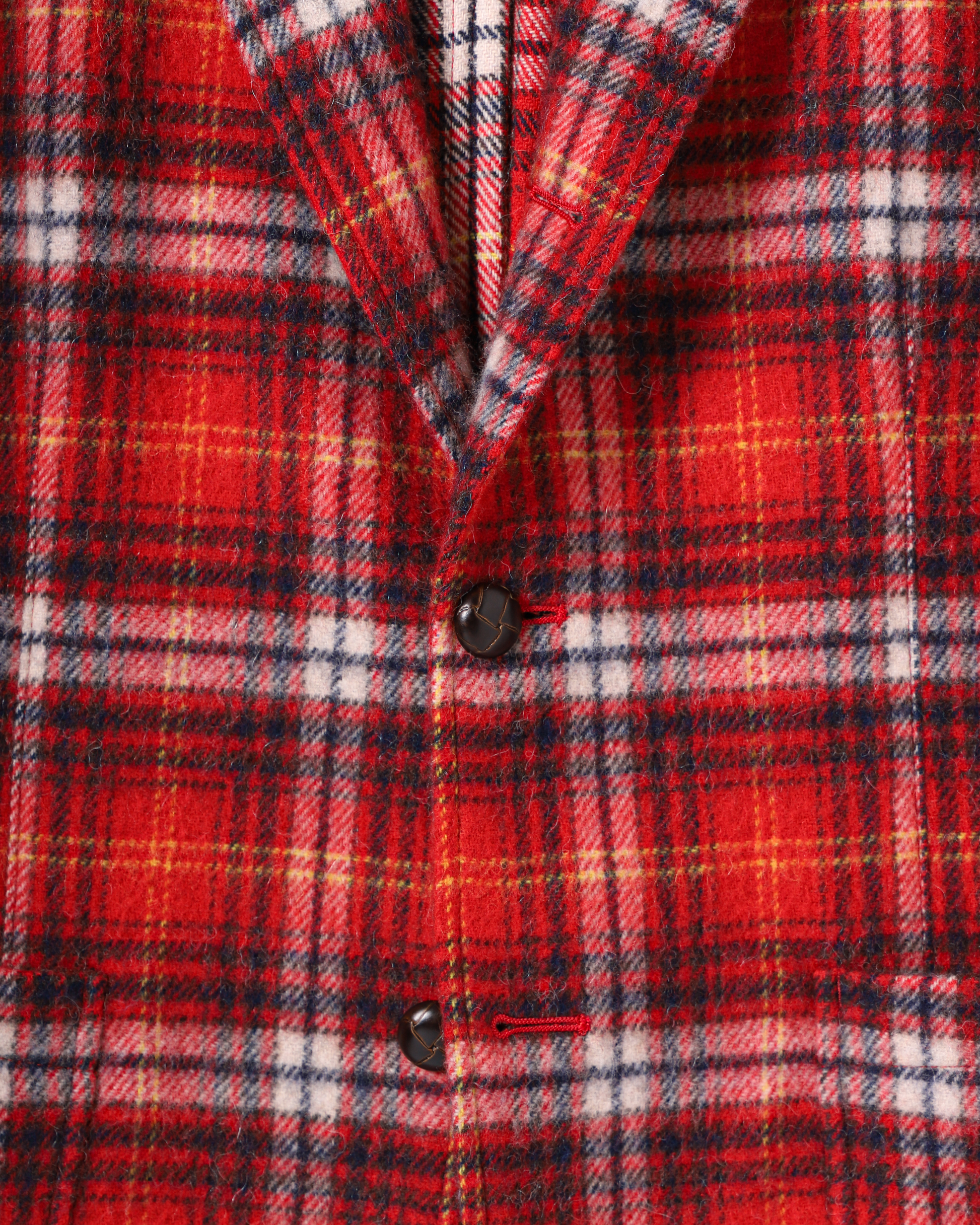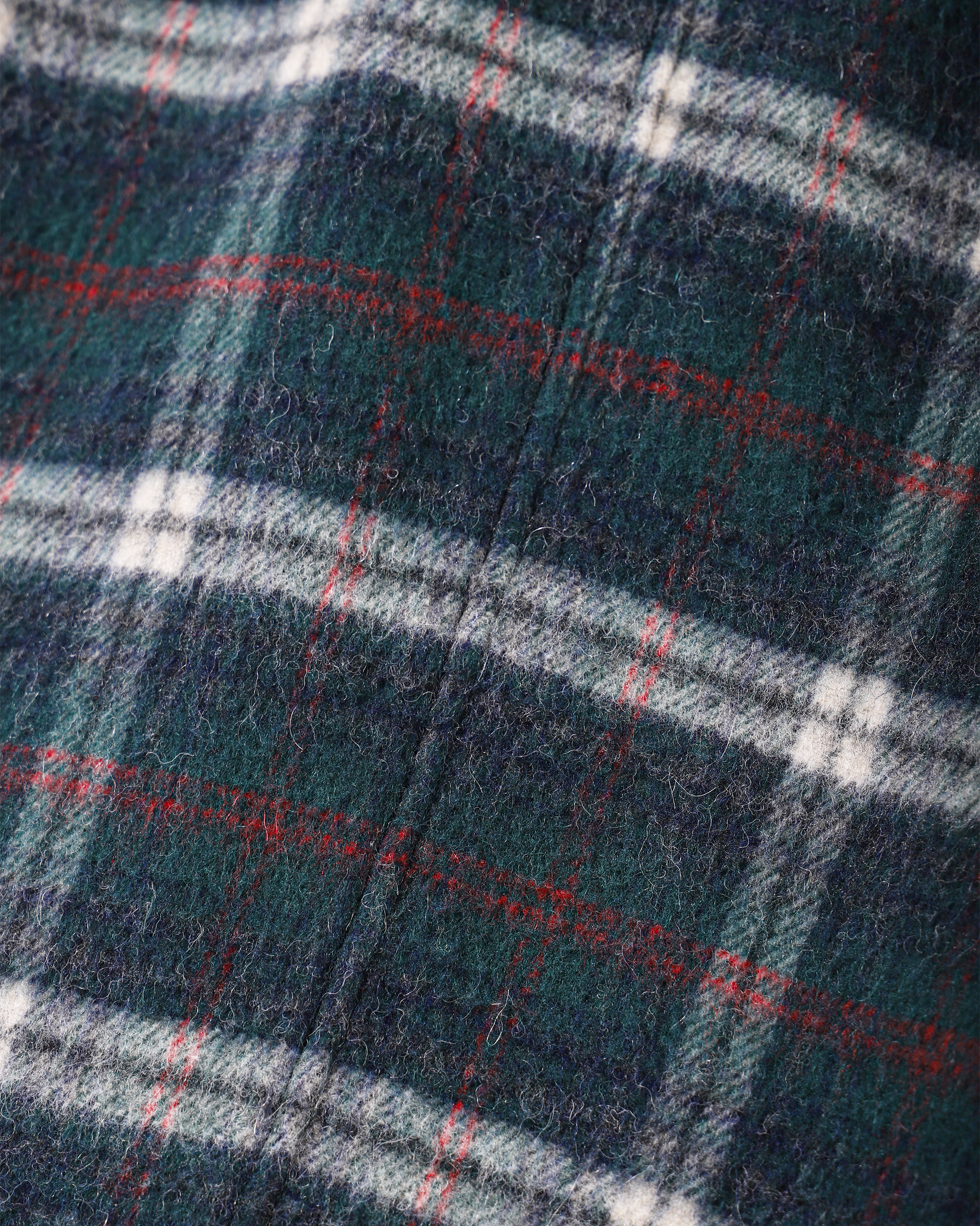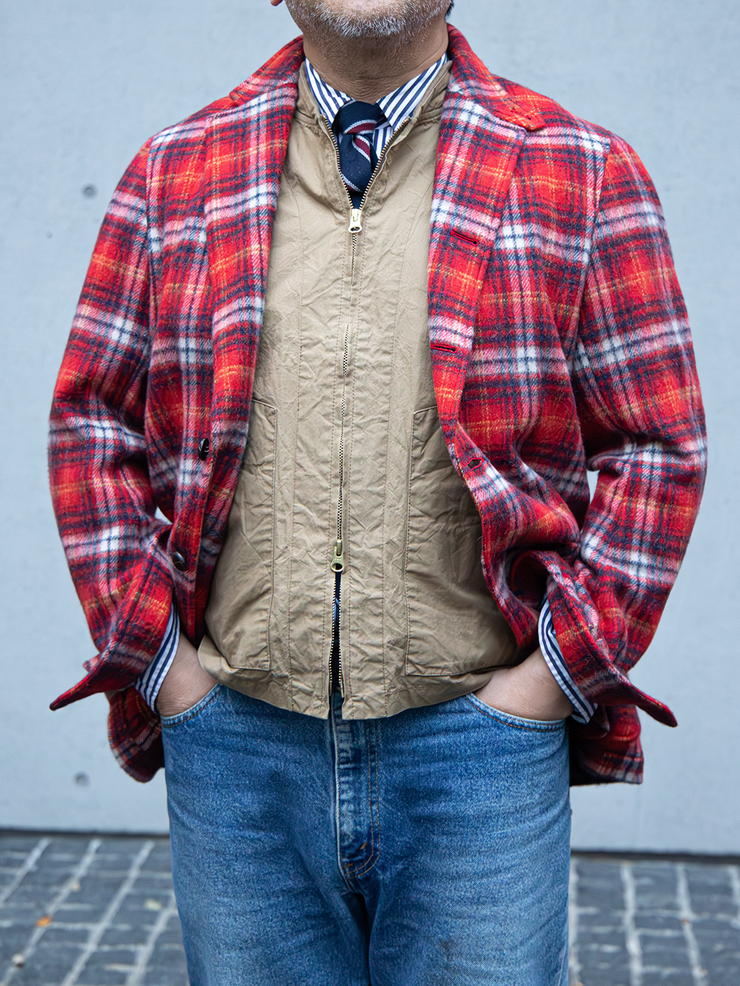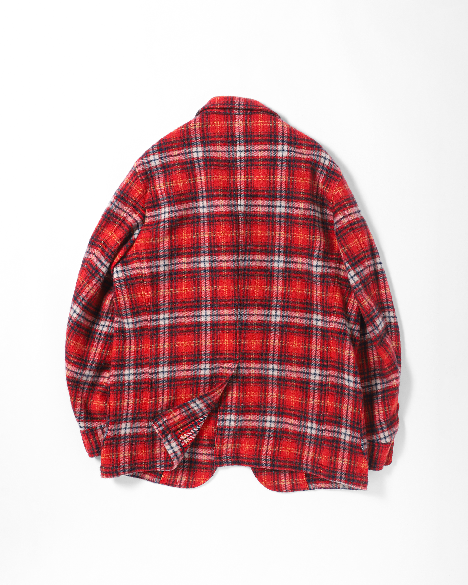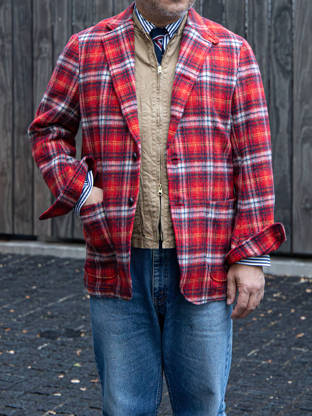 鮮やかな赤を基調としたチェックは冬の白銀の景色に映え、装いに鮮烈なアクセントを与えます。