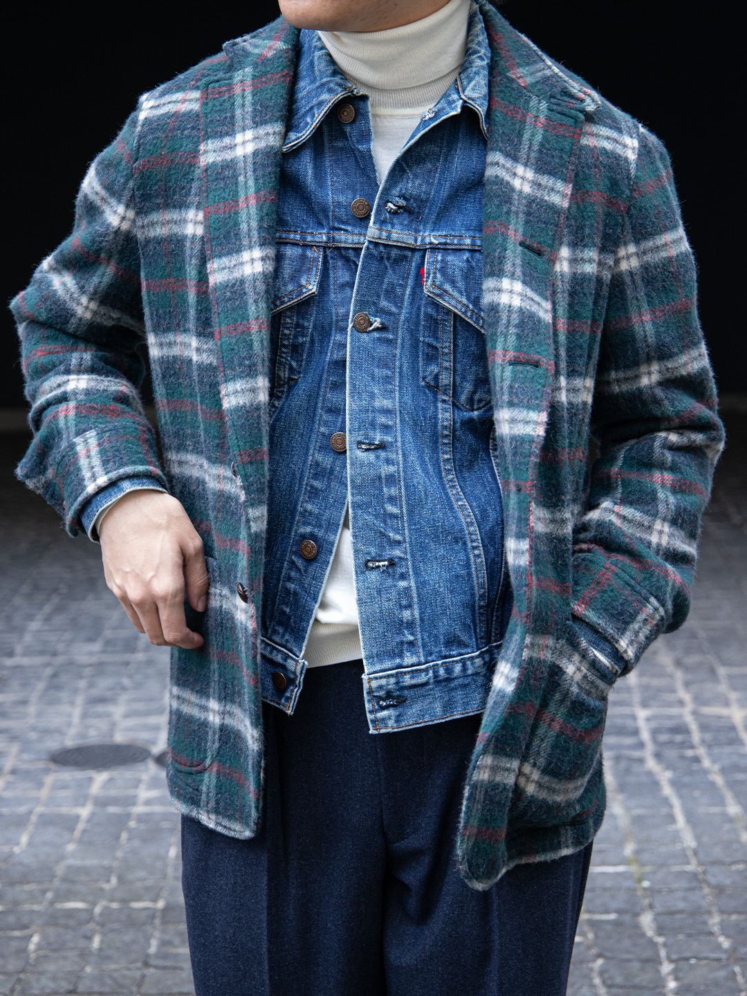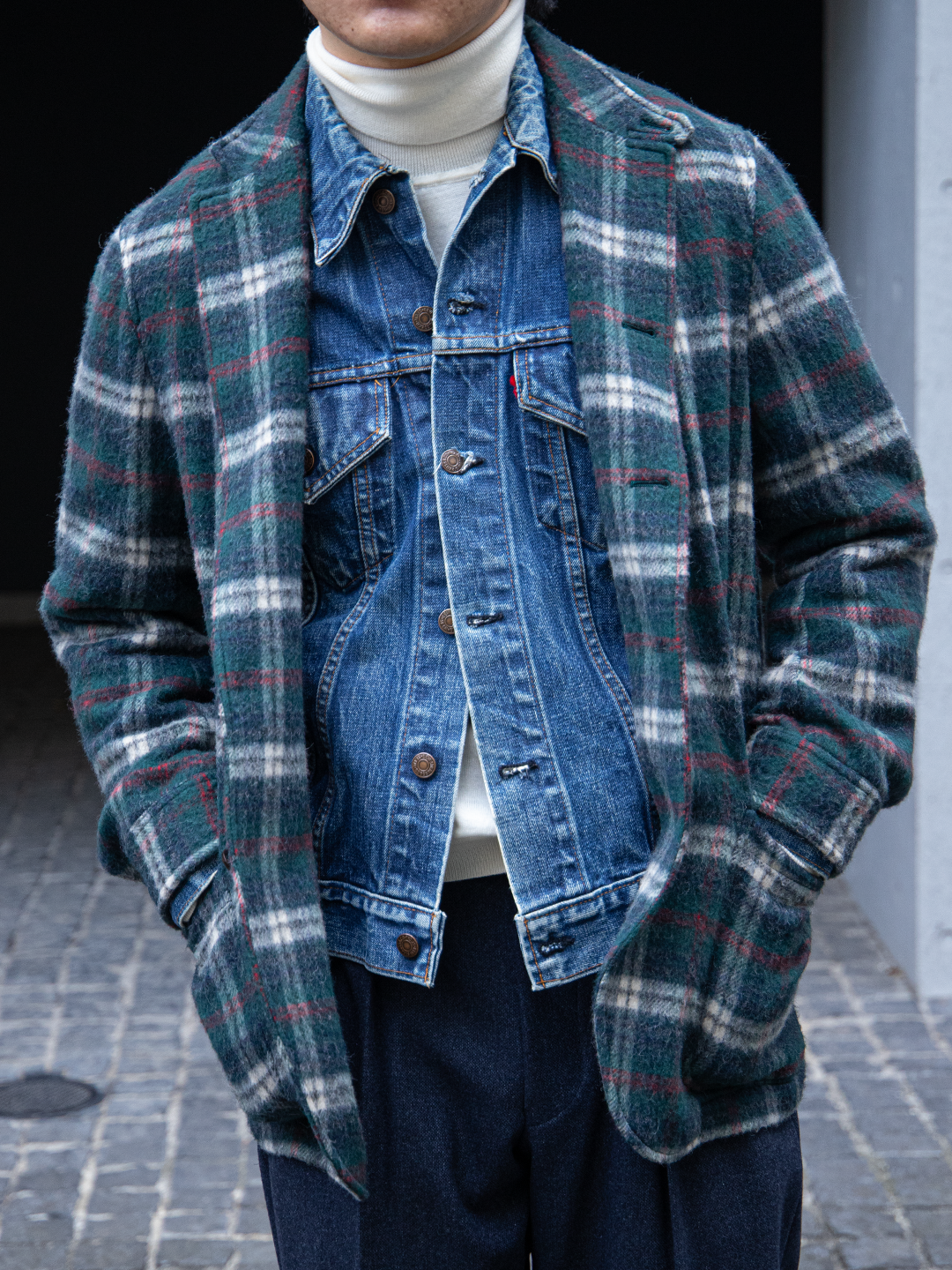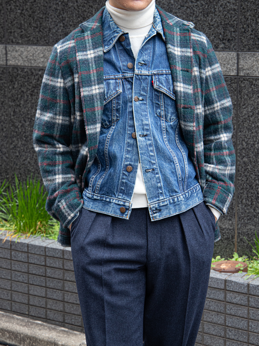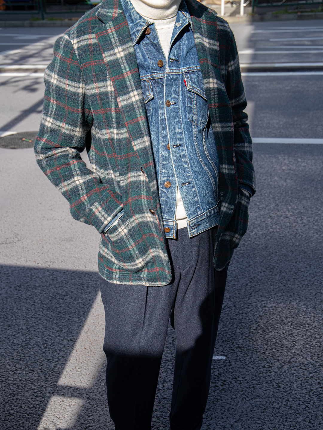 ややゆとりのあるシルエットは現代的なリラックス感を生み出し、例えばタートルネックニットにシャツ、デニムジャケットを着用した上からでもストレスなく着用できる設計です。