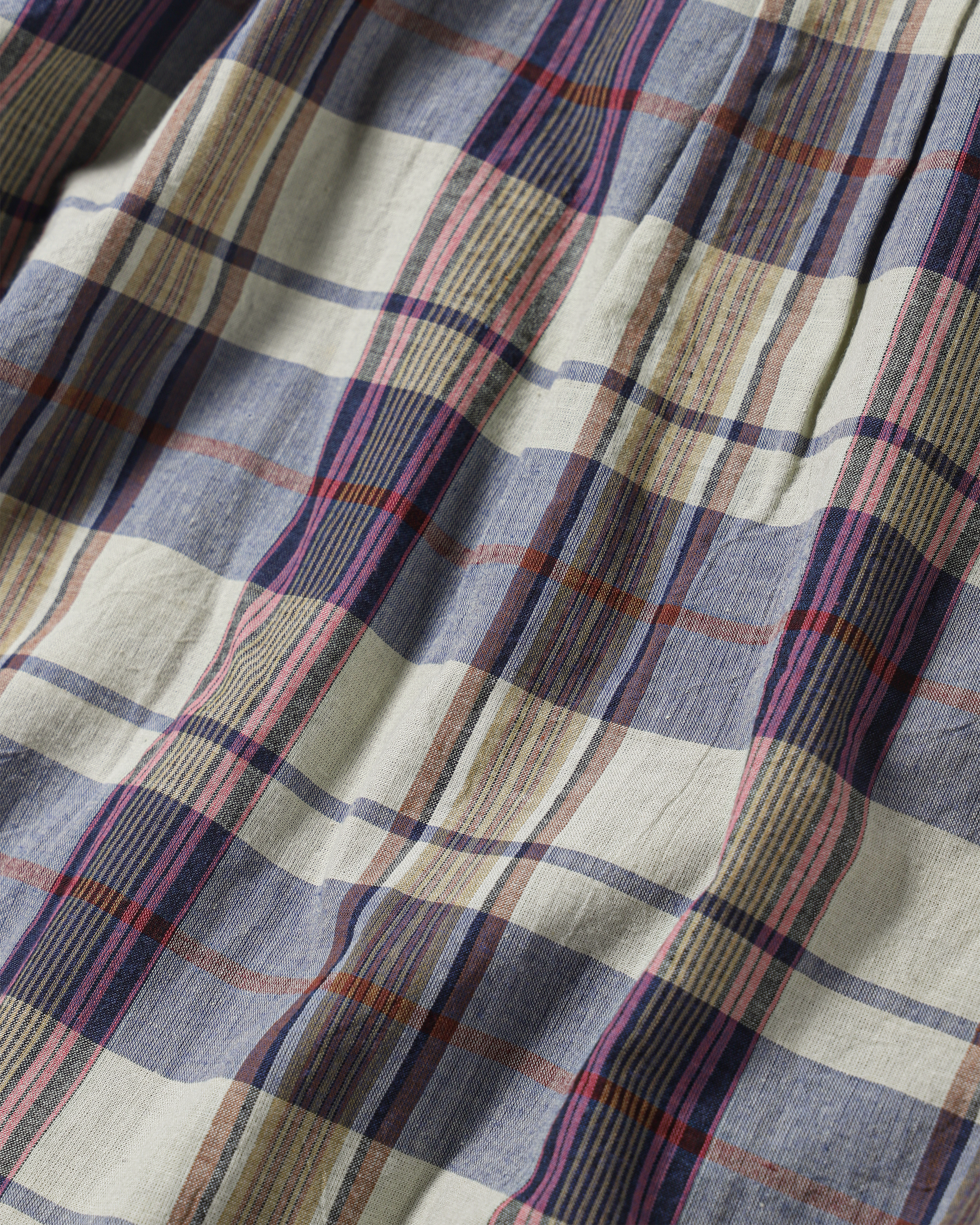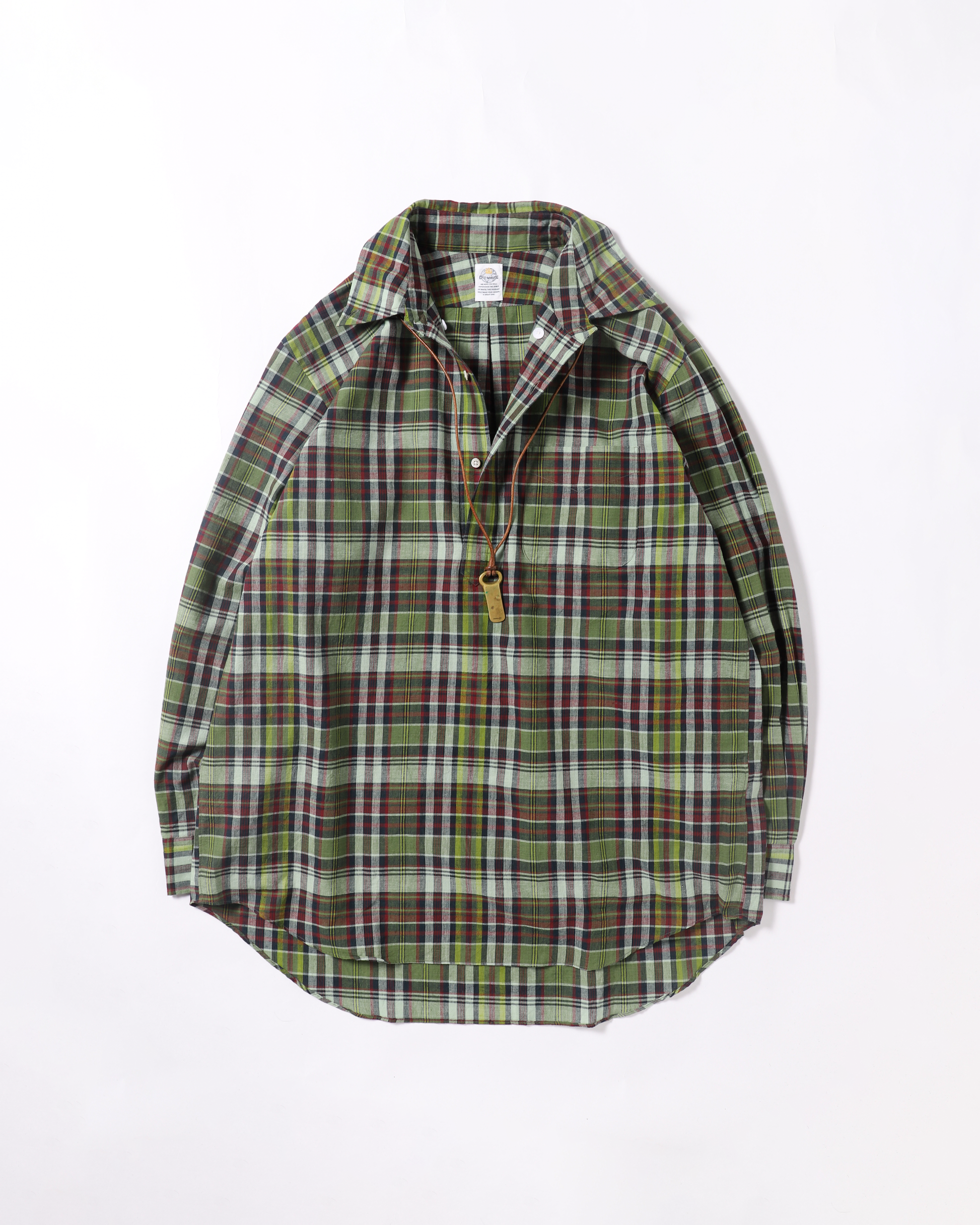 そのクラシカルな思想をベースに、プルオーバー仕様とマドラスチェックという素材使いでより軽快かつリラックスした一着に仕立てたのが本モデルです。