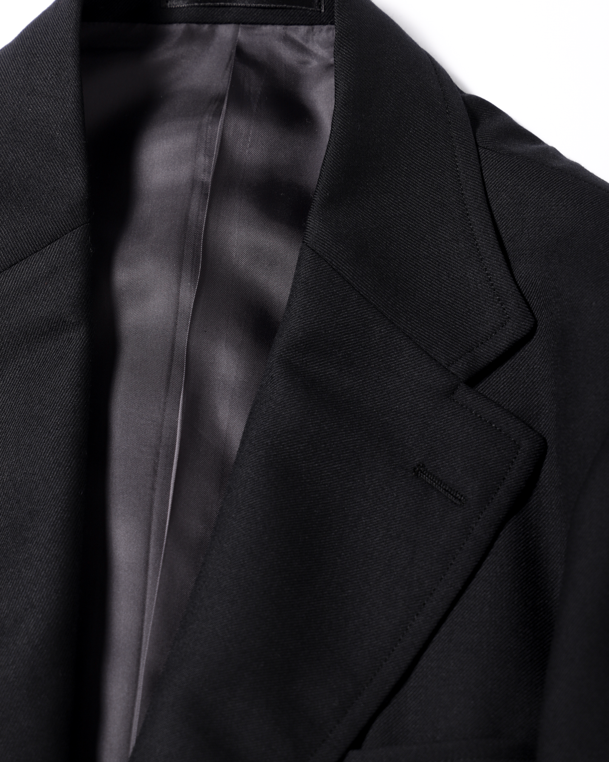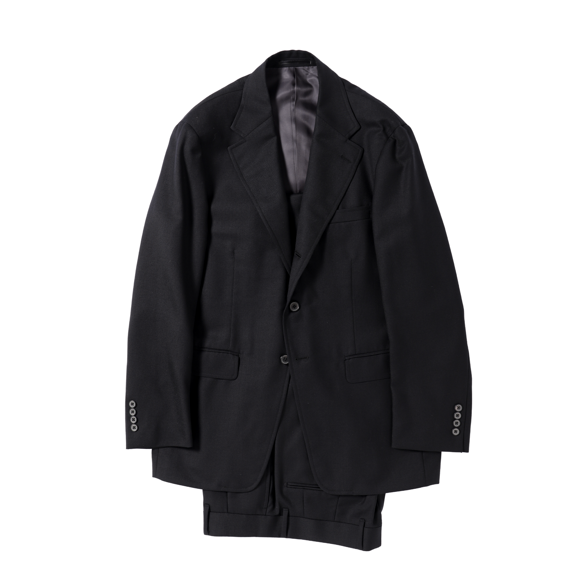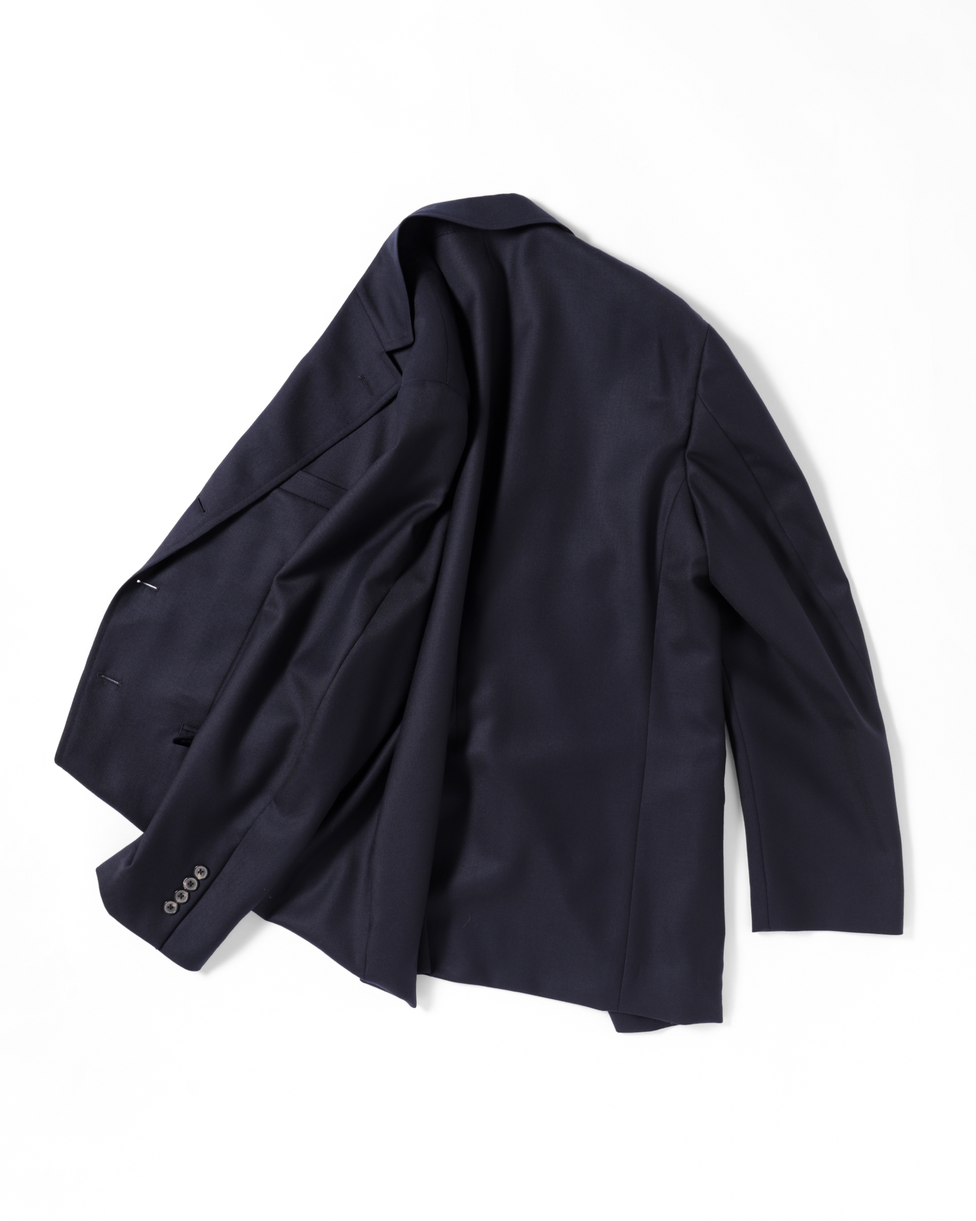 上質なウールサージを用いたこのスーツは英国にて1819年創業"John Foster"のファブリックを採用。