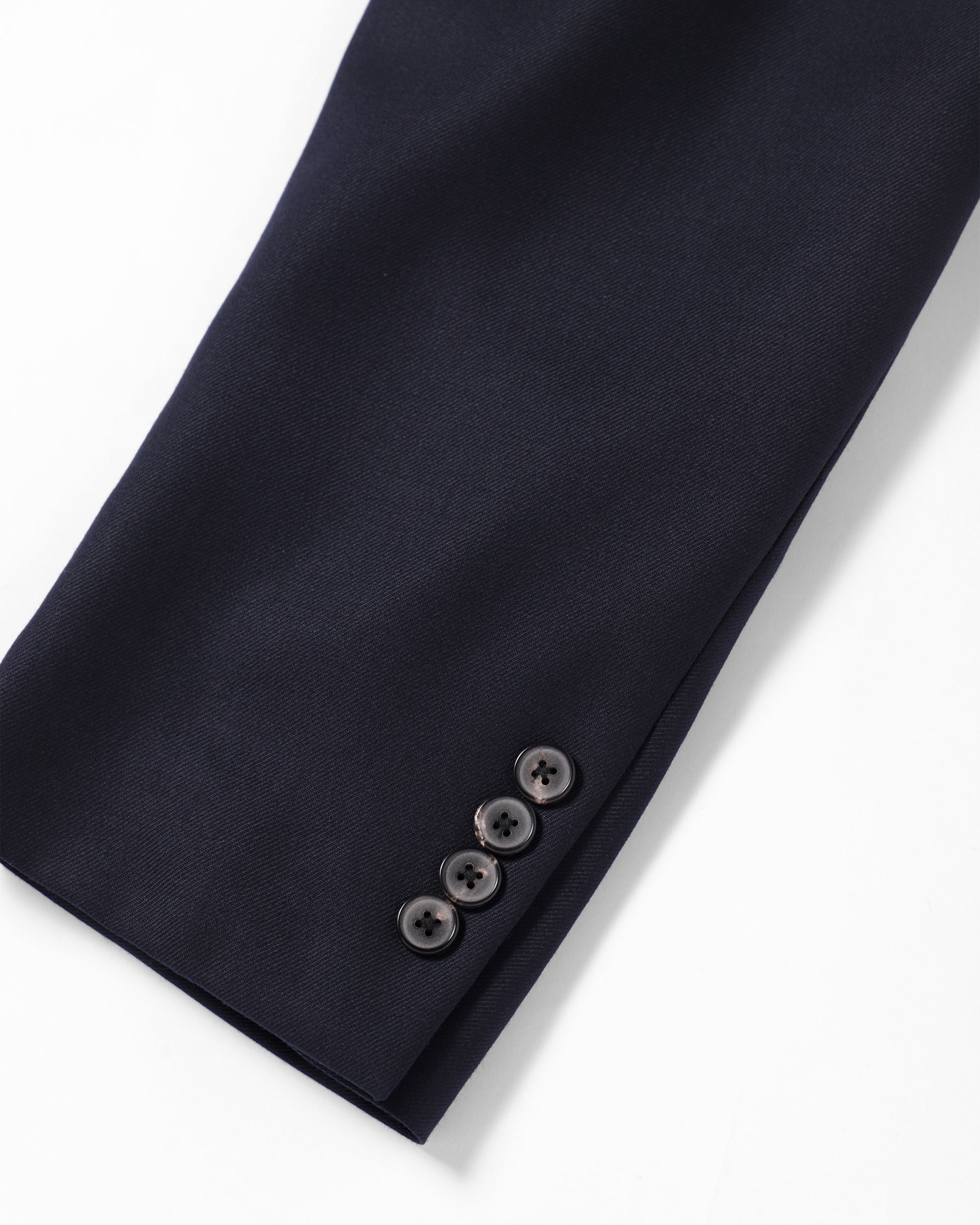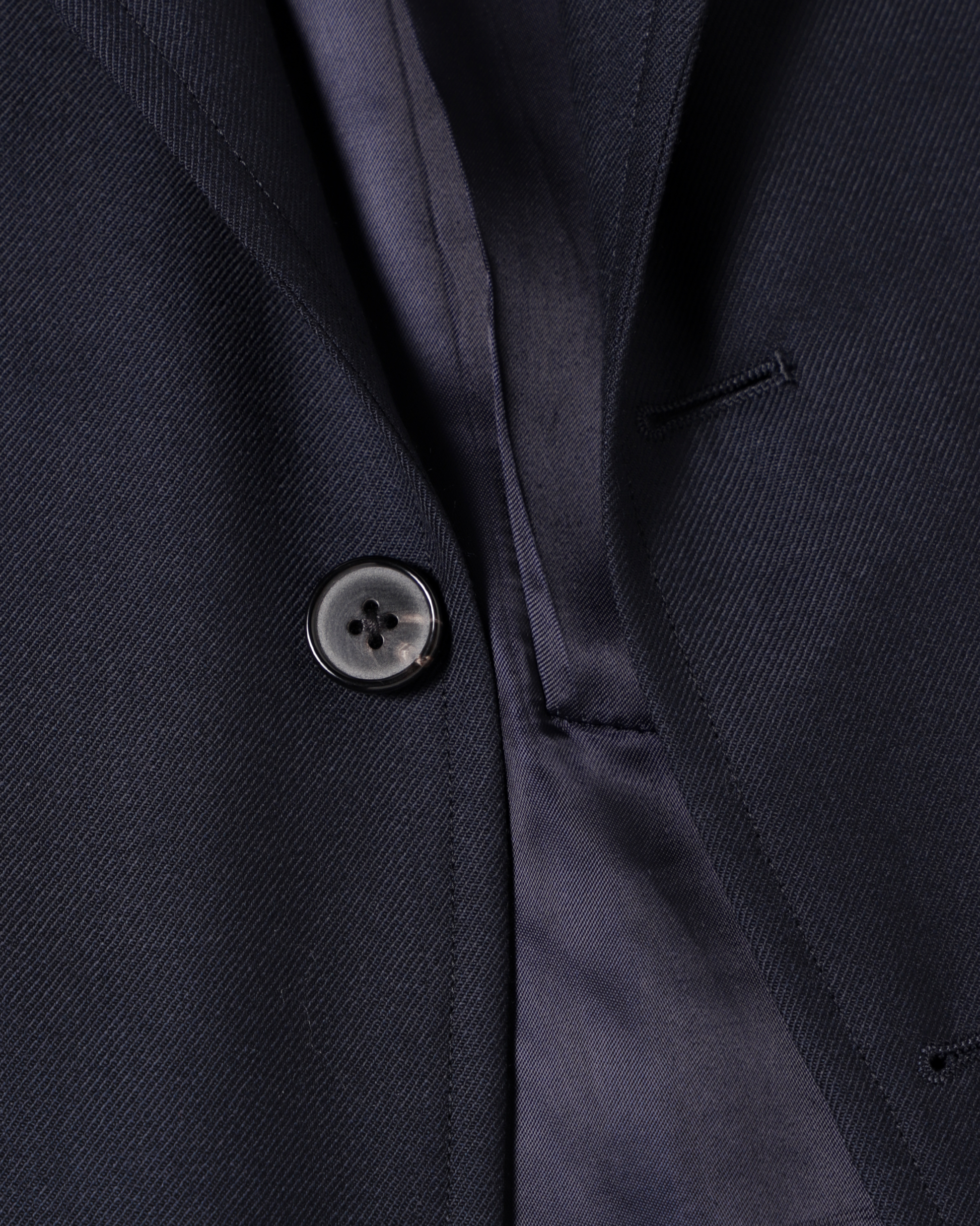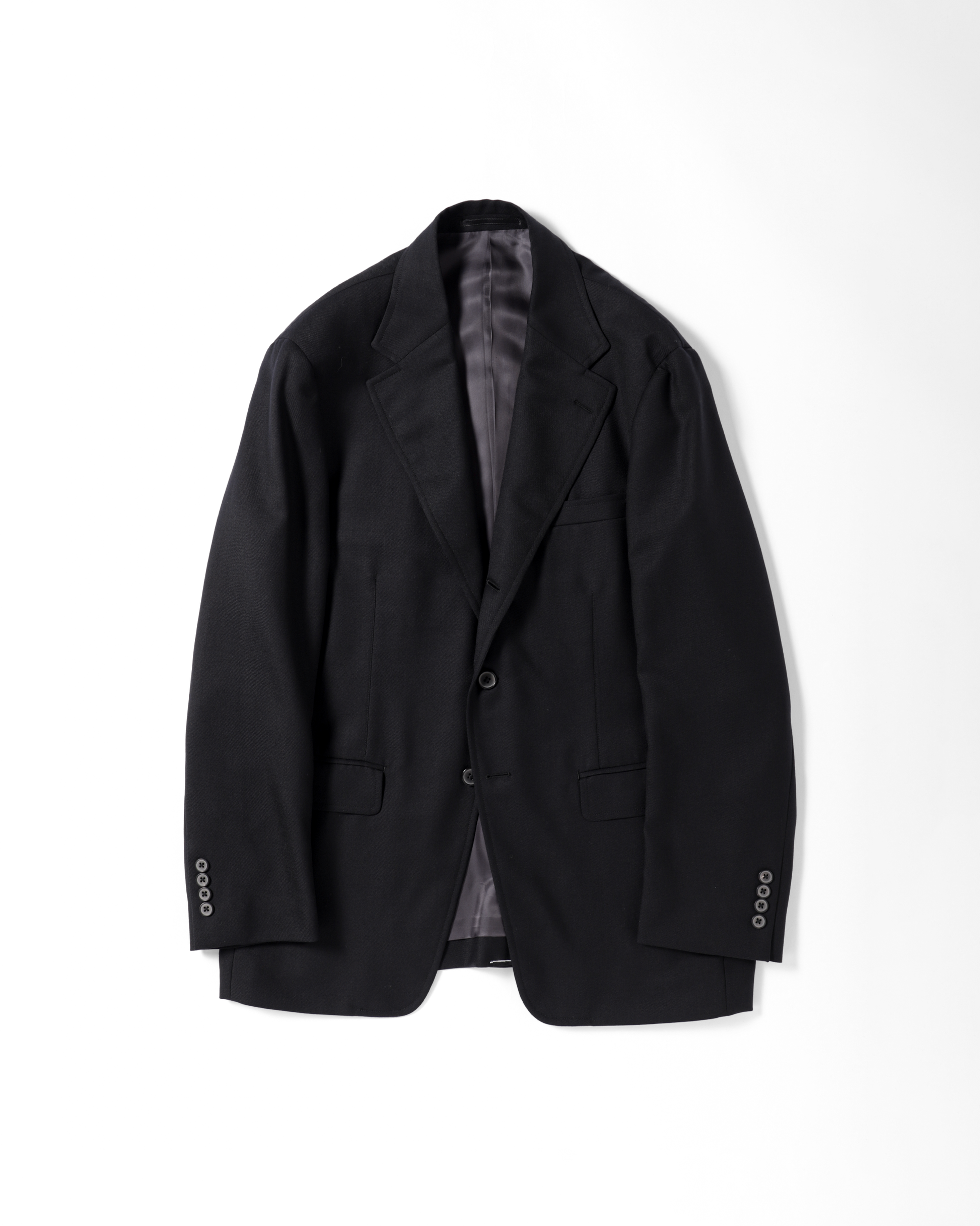 上質なウールサージを用いたこのスーツは英国にて1819年創業"John Foster"のファブリックを採用。