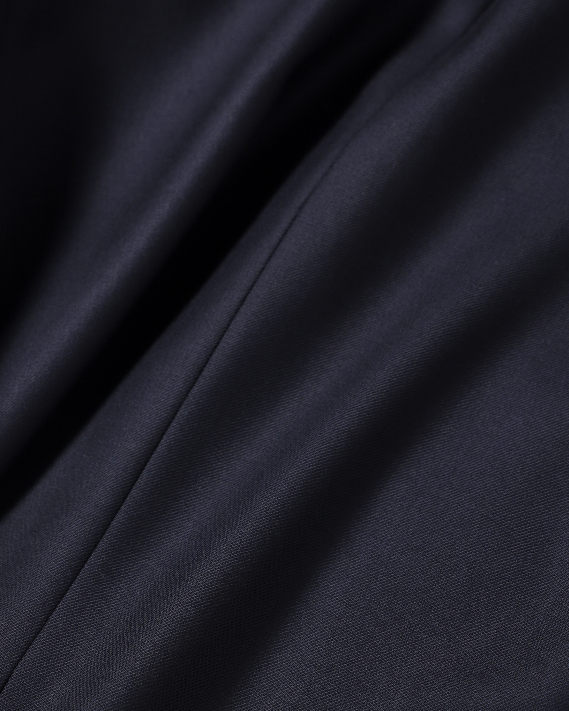 イタリアものとすら思わせる控えめな艶と双糸ならではのハリ感が共存するテキスタイルはドレープが美しく着る人の佇まいに自然な風格を添えます。