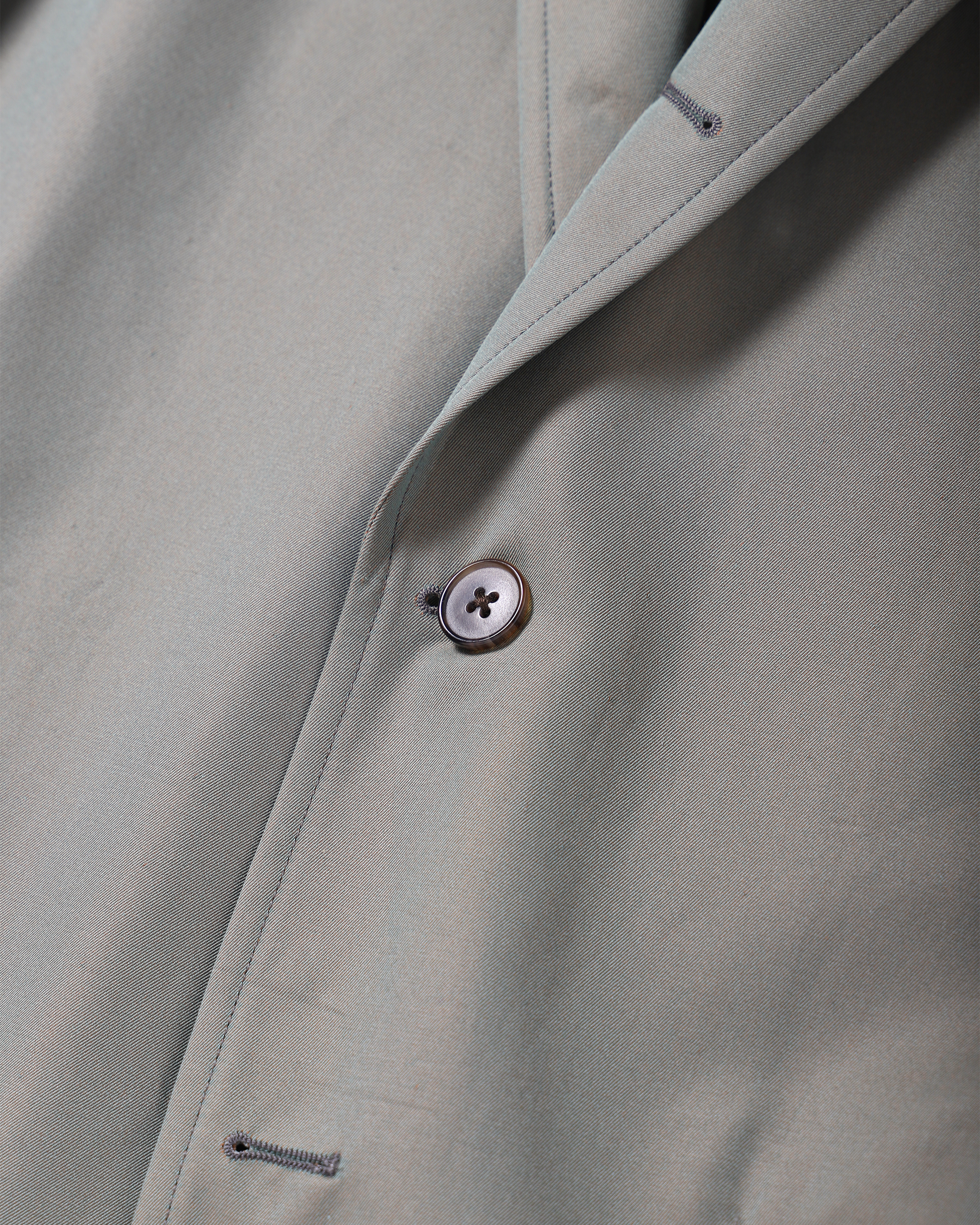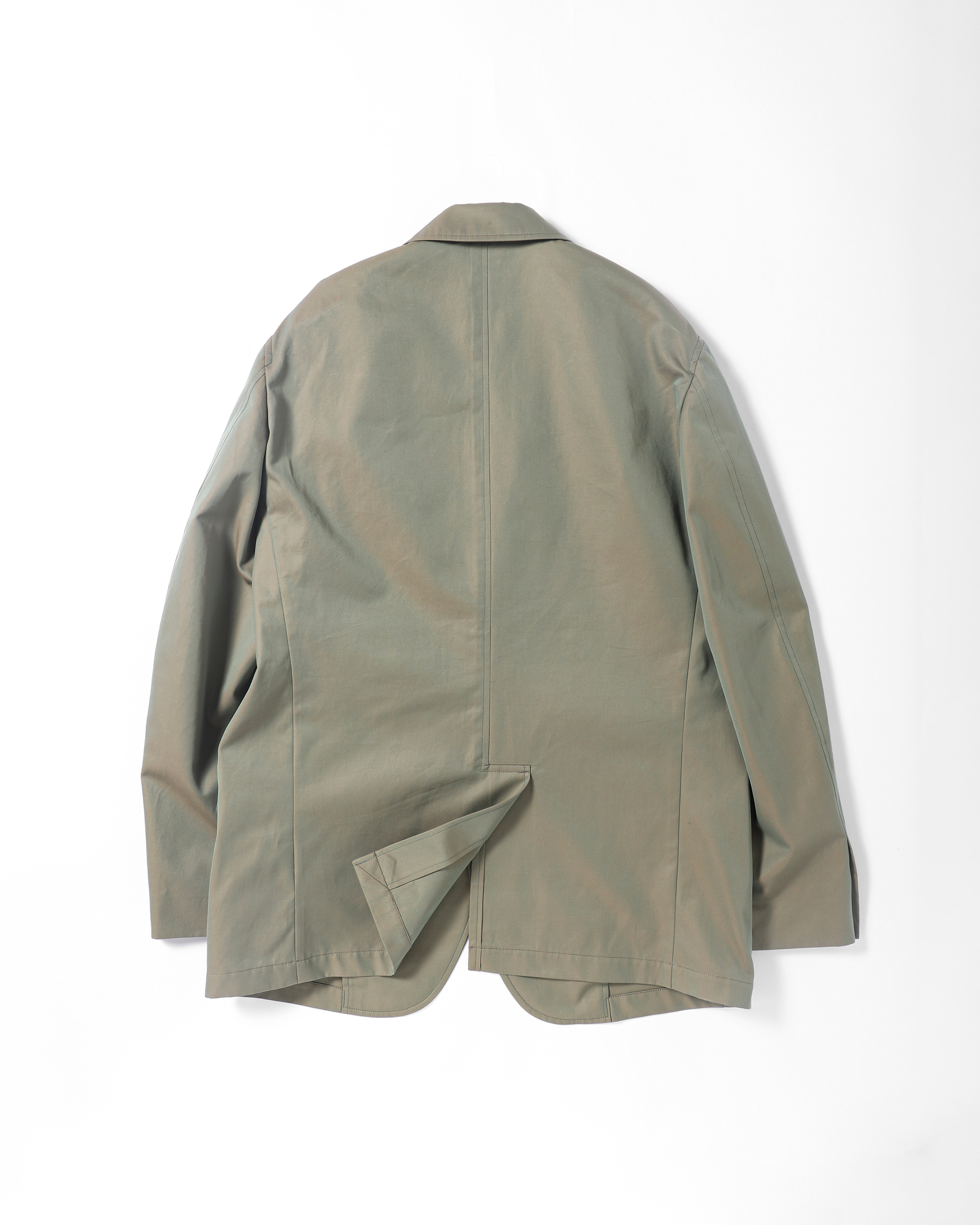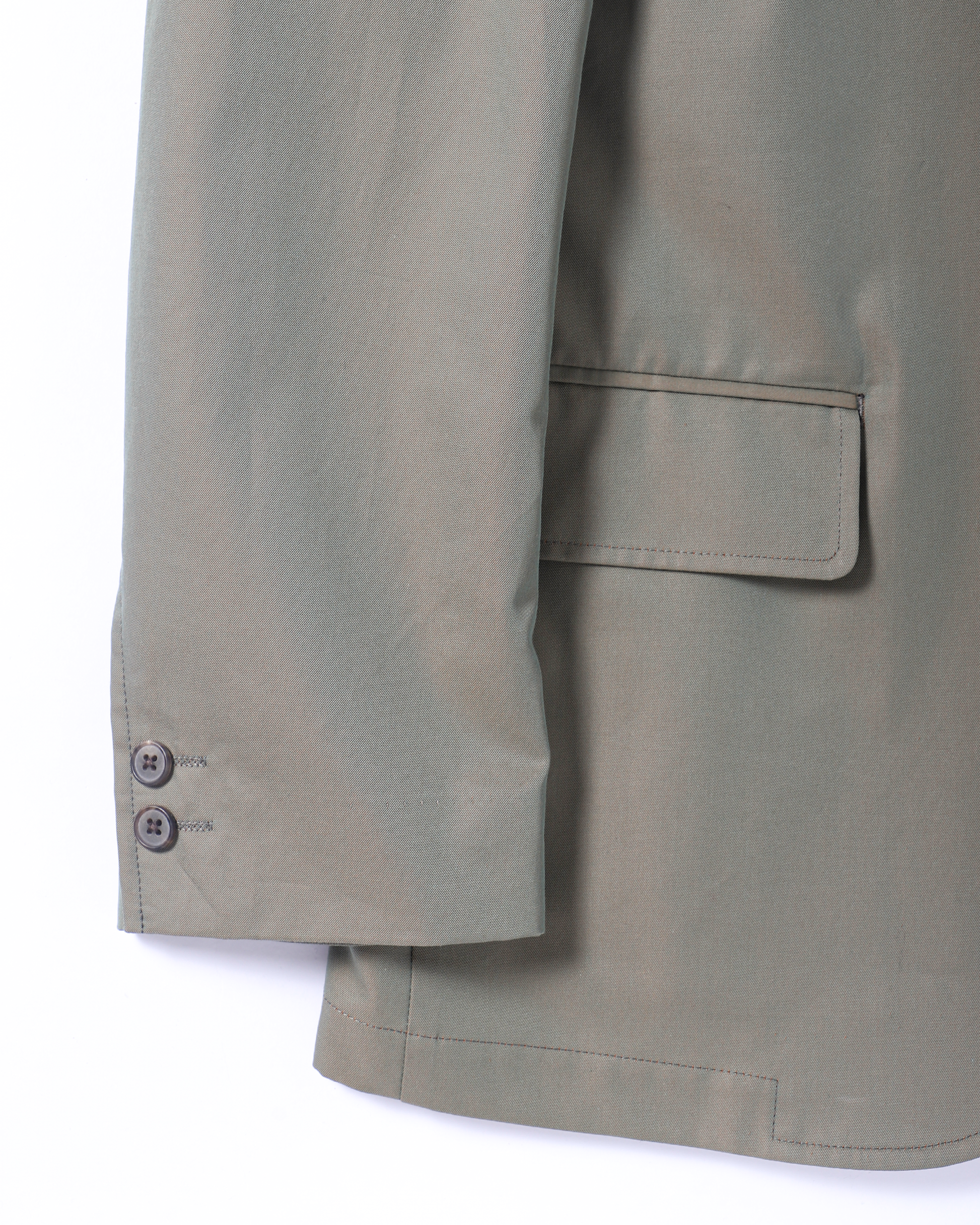 使用している素材は、本来トレンチコートやバルマカーンコートなどに使われる撥水性を備えた高密度ギャバジン。