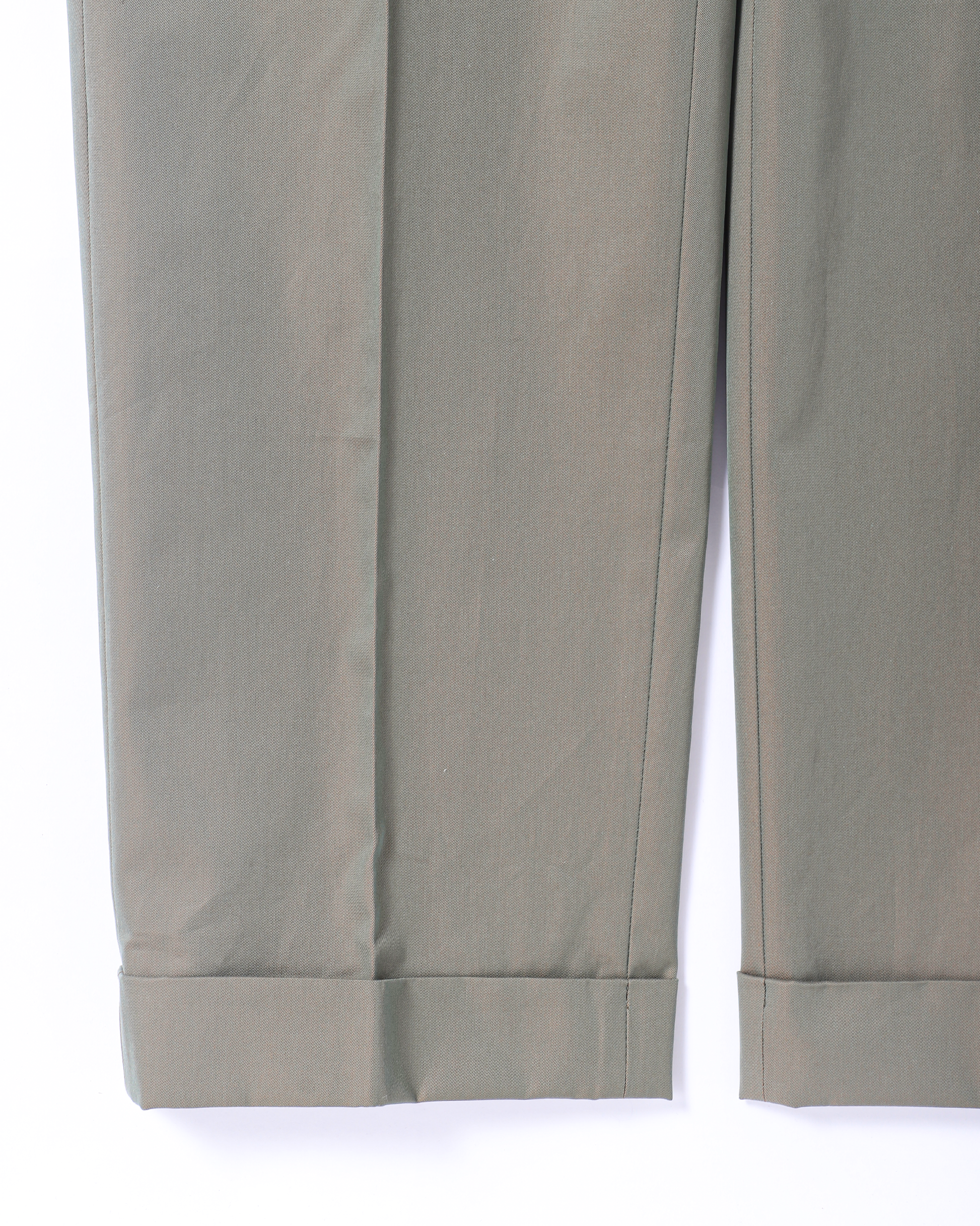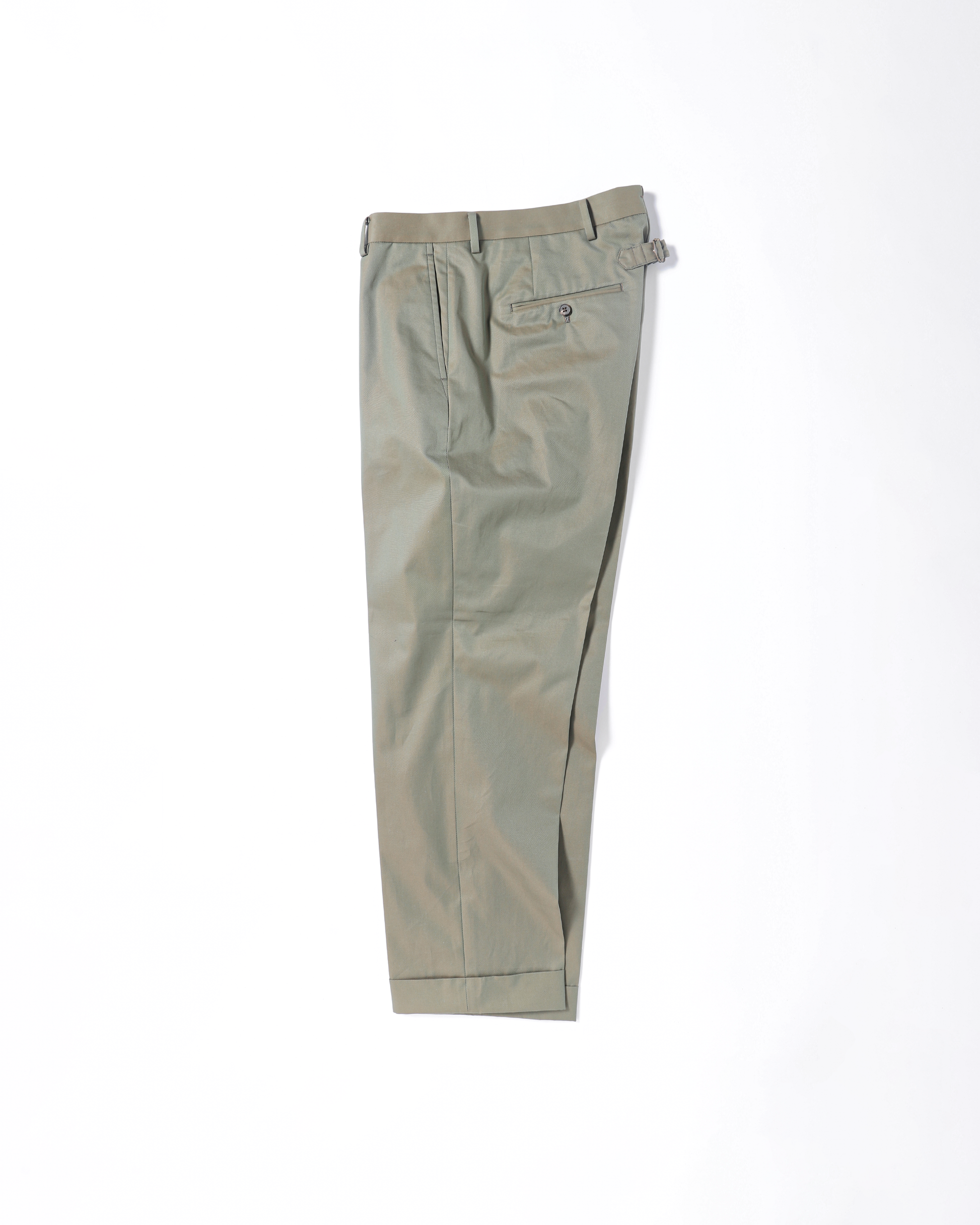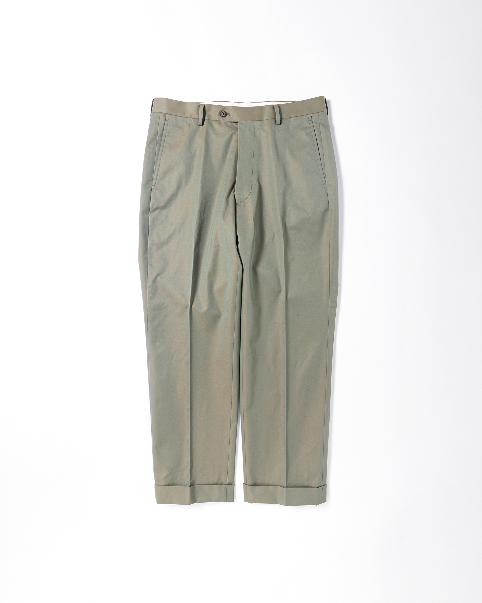 トラウザーはしっかりと美しいシルエットが自立するパイプドステム(直線的なワイドストレートシルエット)。