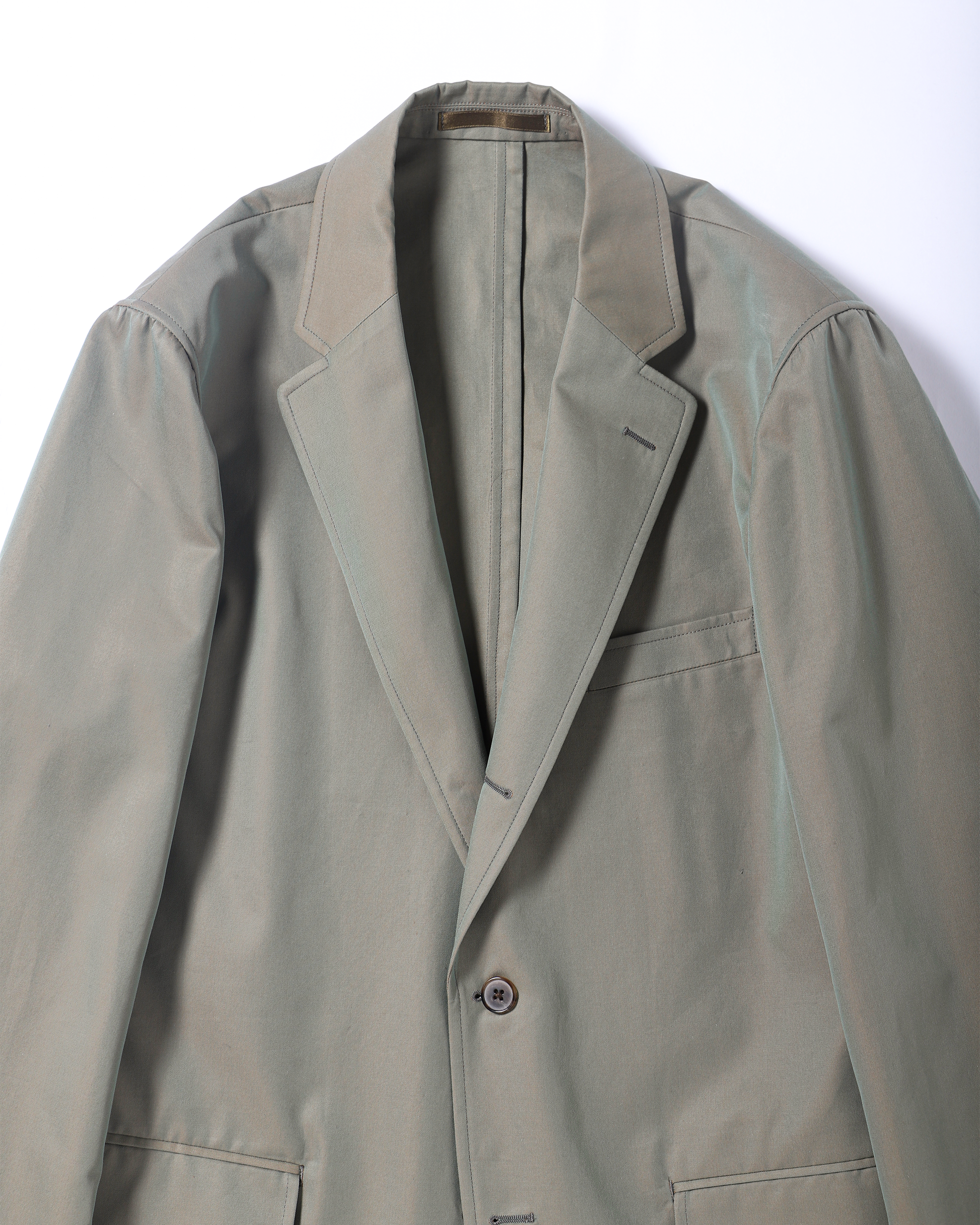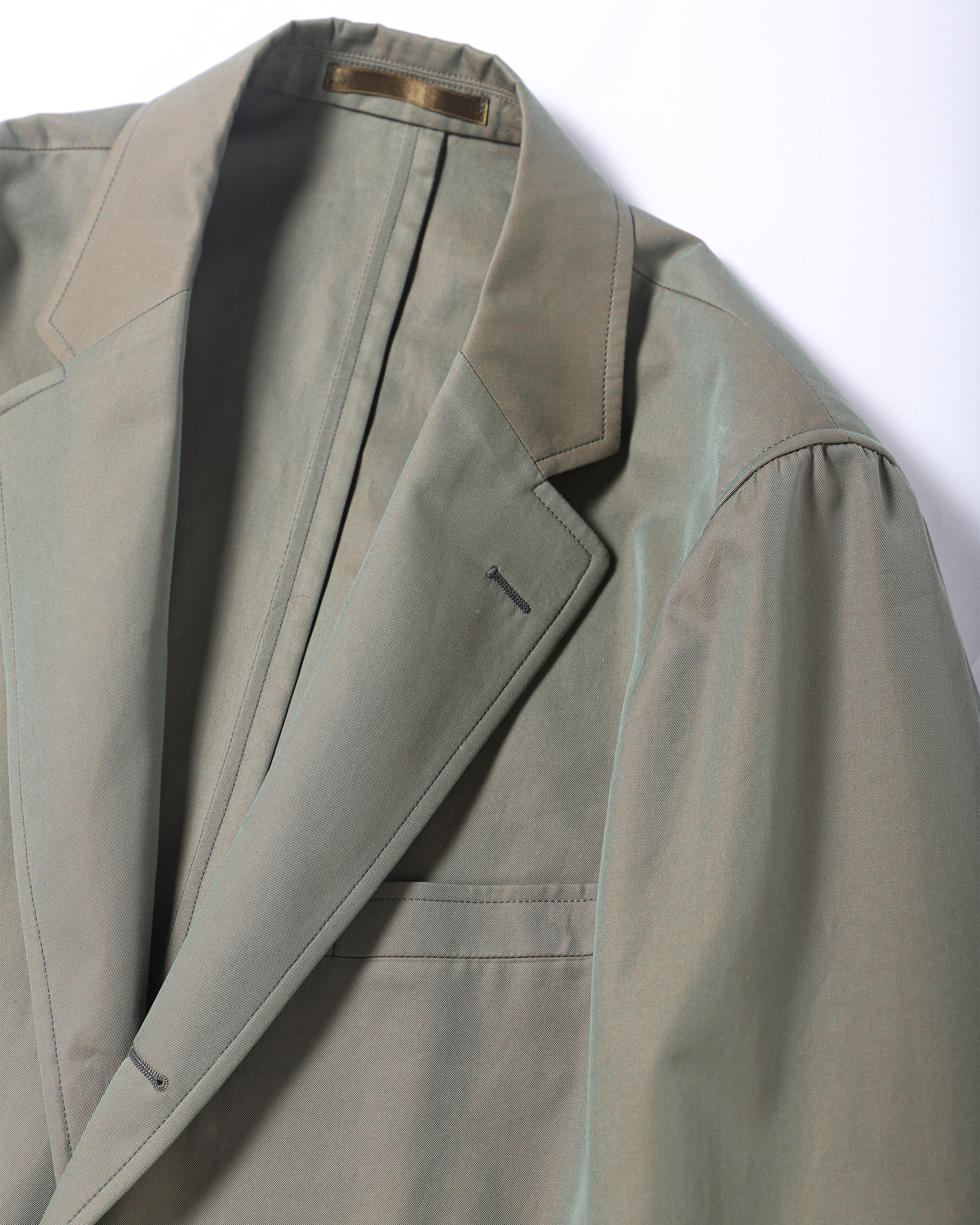 センターフックベント仕様で袖口は2つボタン。フロントは3つボタン段返り仕様で6mm幅のミシンステッチがシンプルな中にも存在感を与えています。