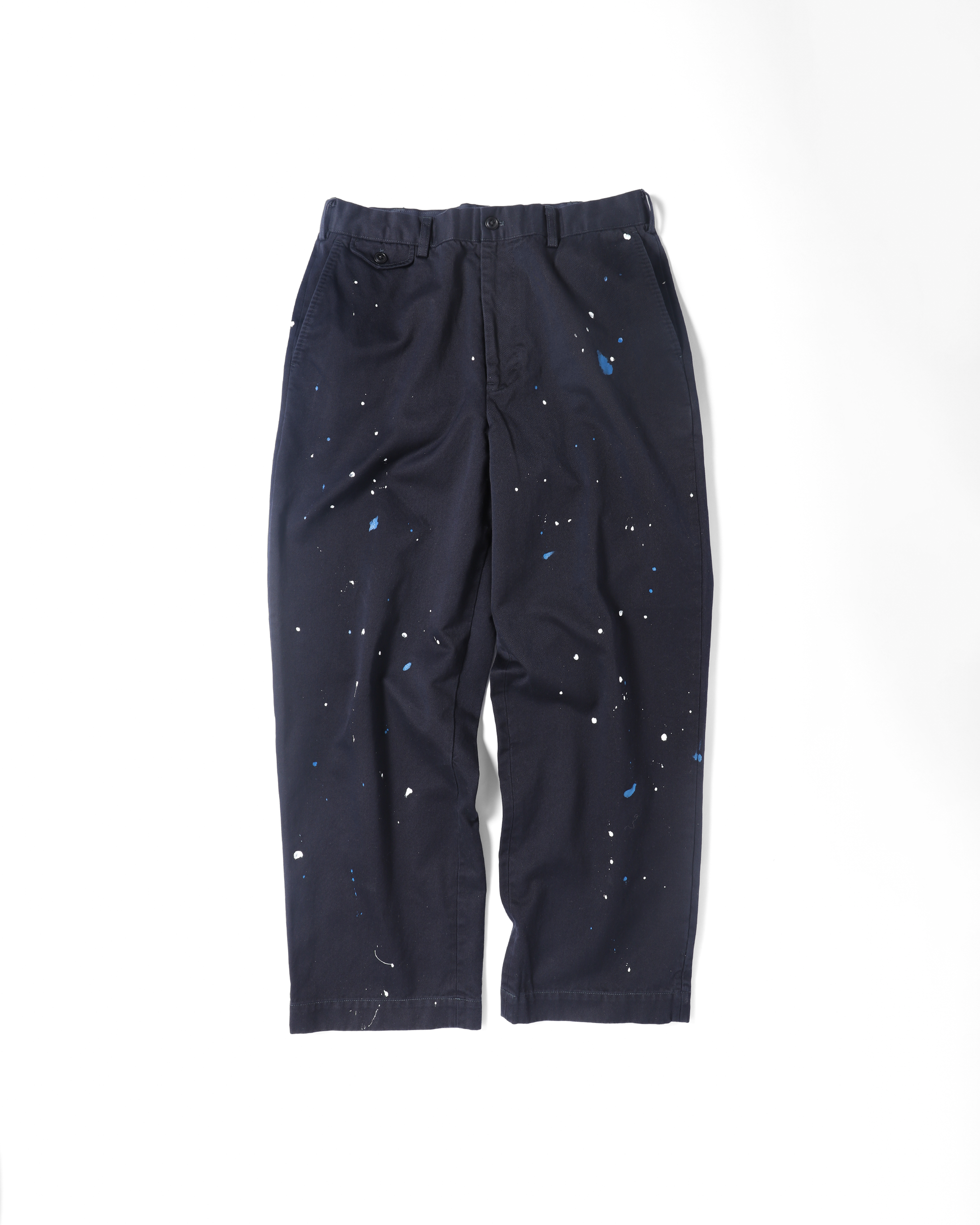 D.C.WHITE定番の“West Point Officer Pants”をベースに、アーティストの作業着から着想を得てデザインを加えた一本。