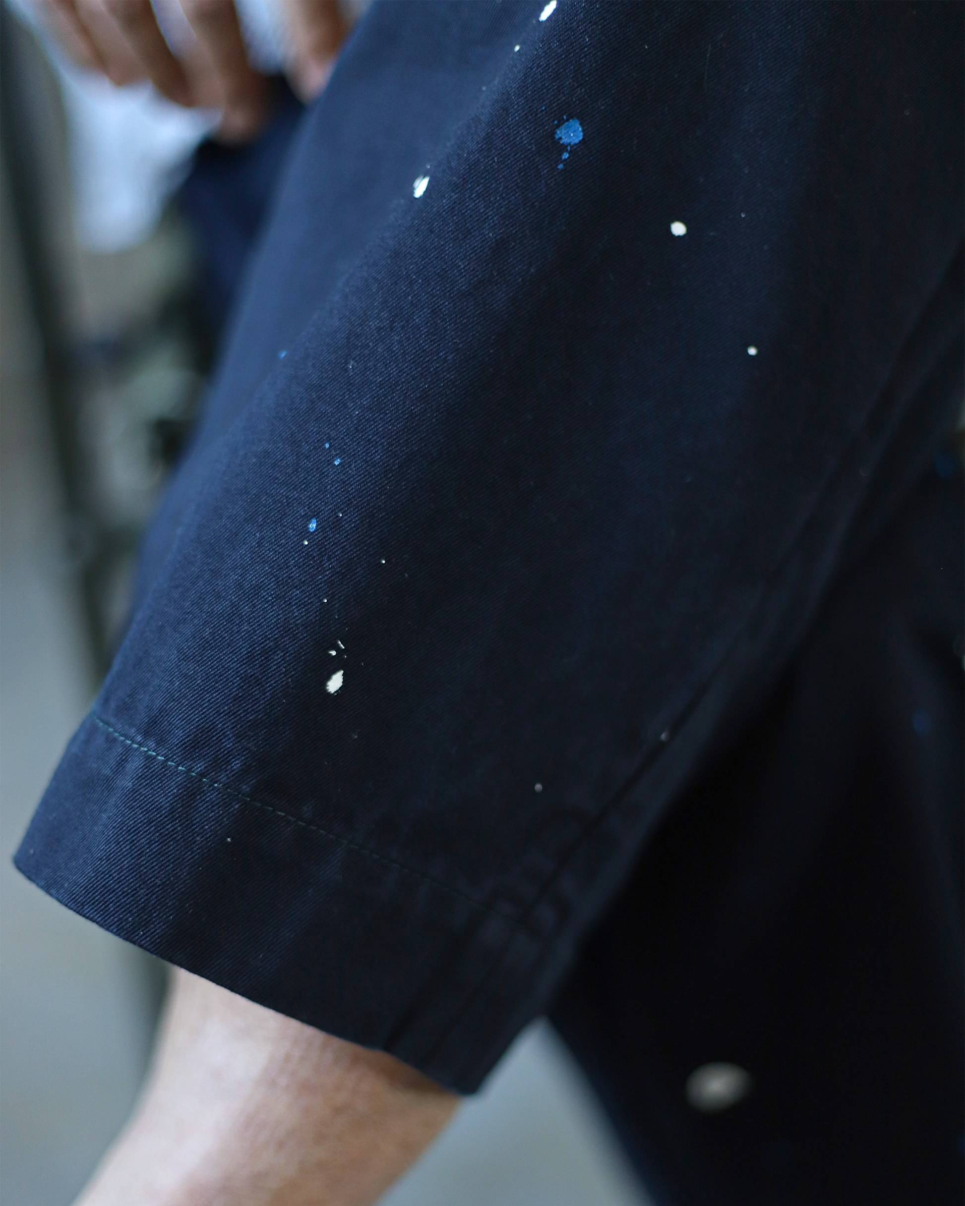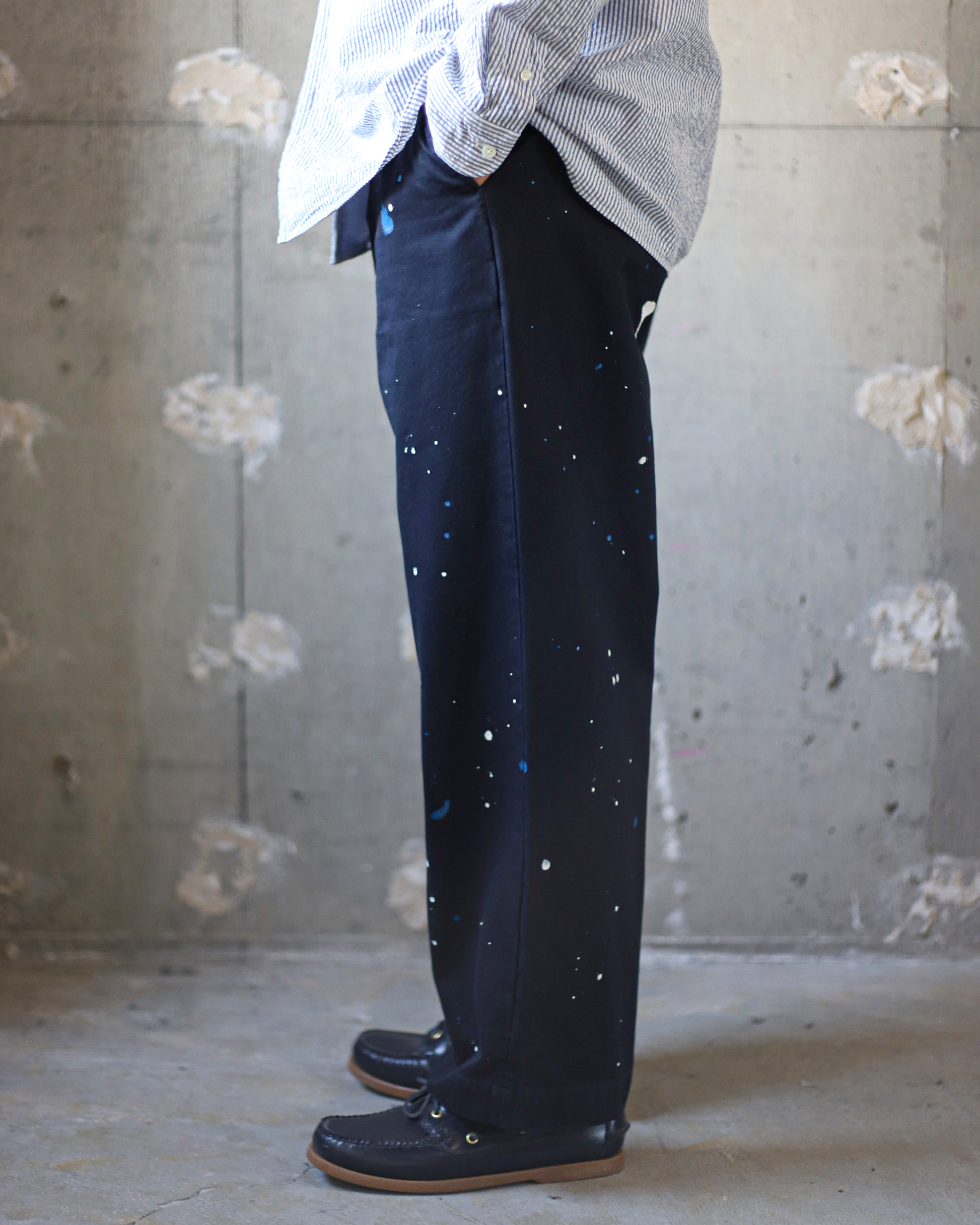 ガーメントダイを施したネイビーボディに、サックスとホワイトの2色のペイントを細かく配しており、従来のものよりも落ち着いた印象に仕上げることでこれまでペイントチノを手に取ってこられなかった方もお選びいただきやすい仕様となっております。