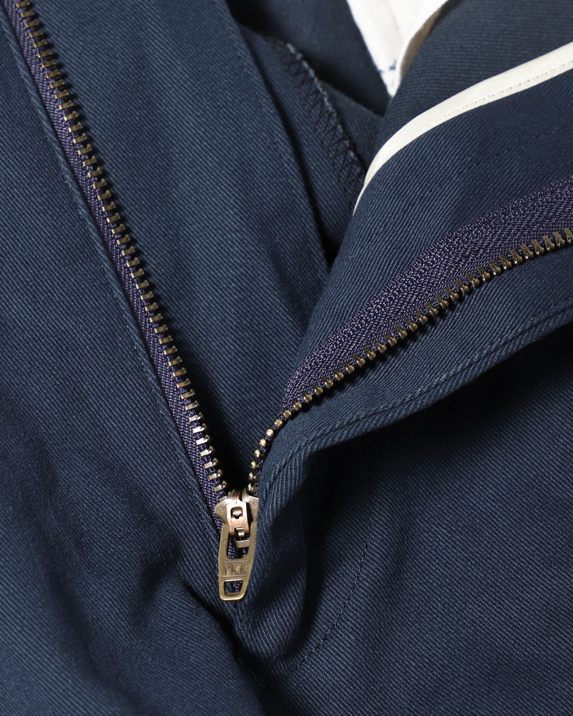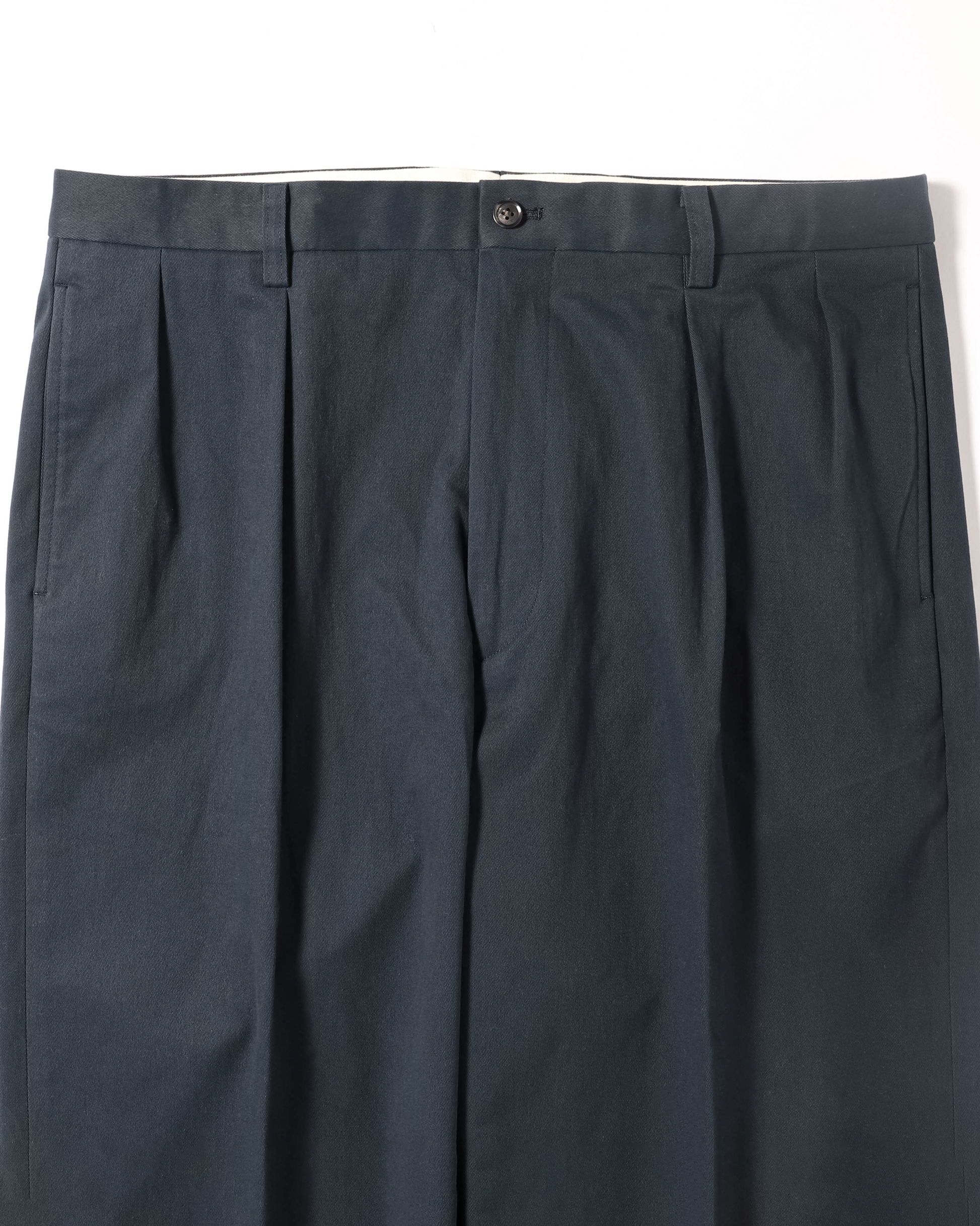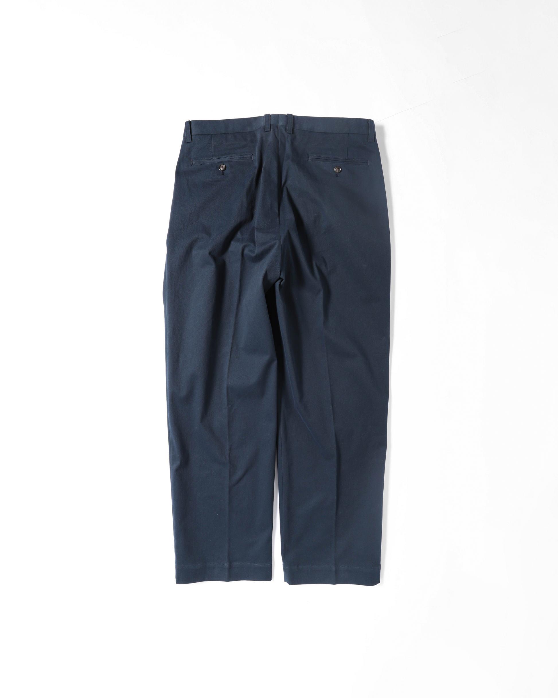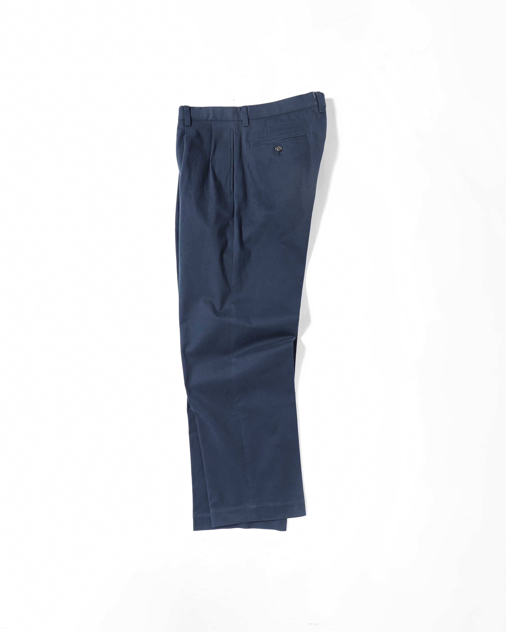 このアイテムで理想とした“品格ある日常着”を体現したネイビーチノは、トラウザーの繊細な仕立てを随所に取り入れながら、カジュアルなコットンチノらしい気負わない雰囲気をまとっています。
