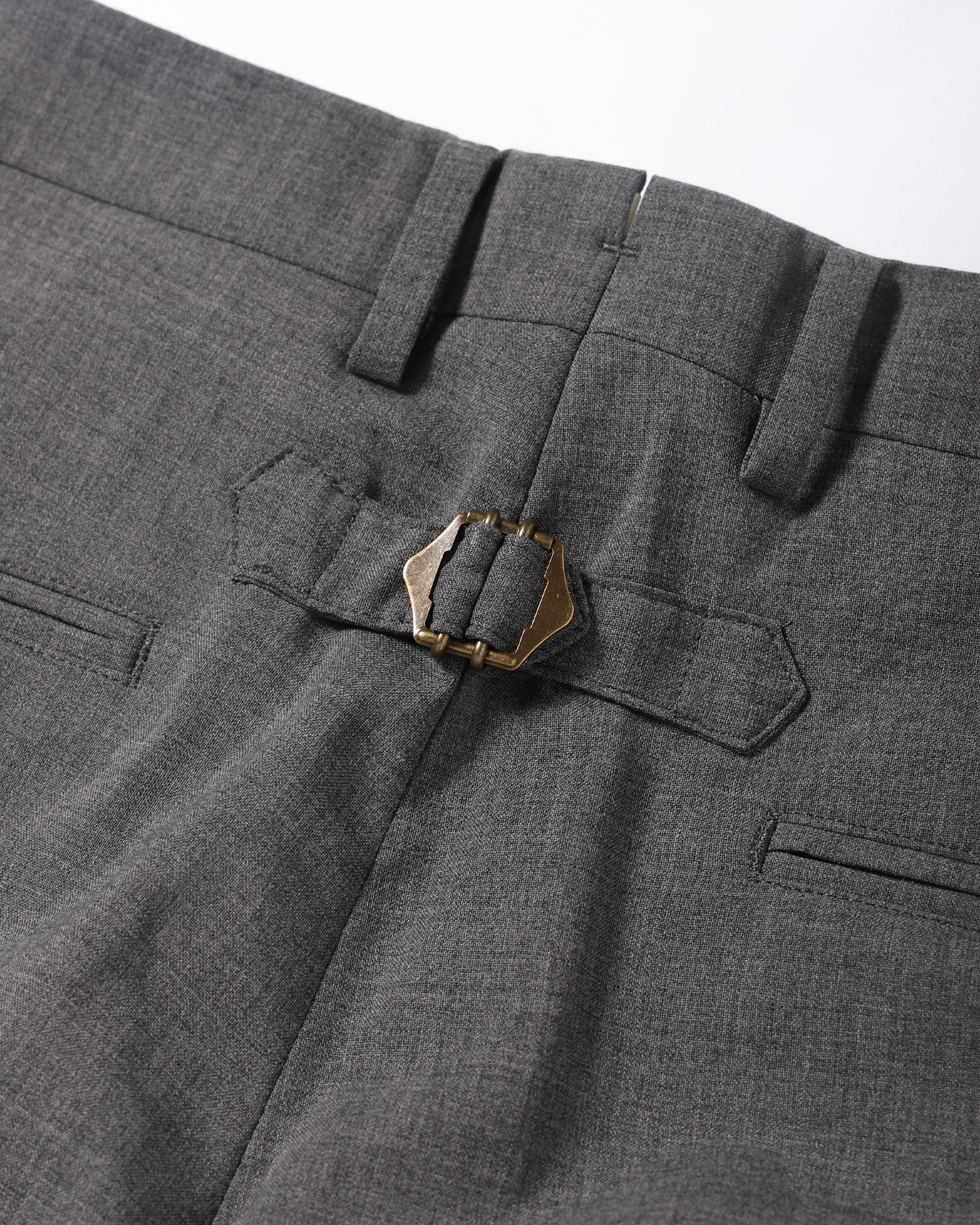 後身頃にはヴィンテージの意匠を引き継ぐバック尾錠を配置。クラシックなムードを醸しながらも現代的な解釈でデザインに落とし込んでいます。