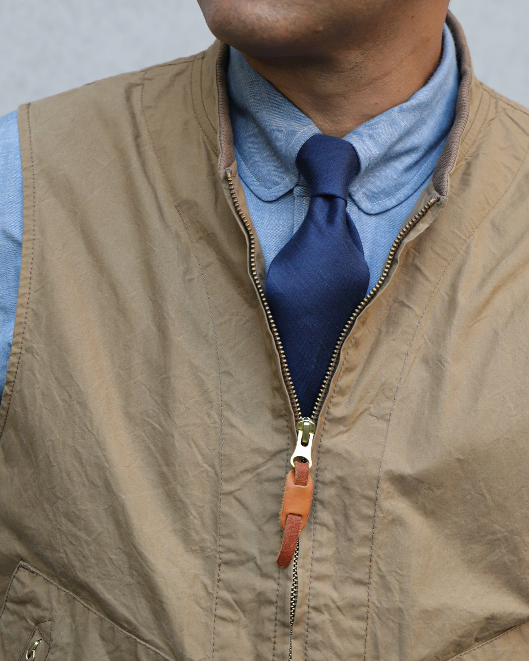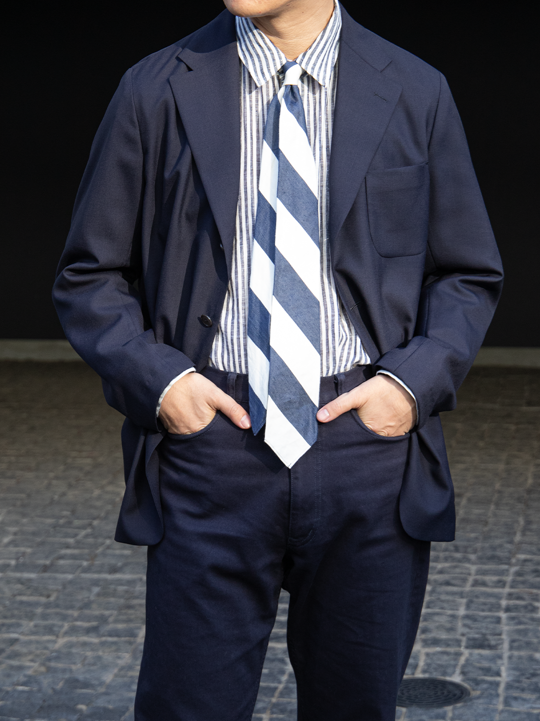 "Vintage Tie"はそうした伝統的なネクタイの様式を踏まえつつ、現代の装いに無理なく馴染む軽やかさを重視して設計。