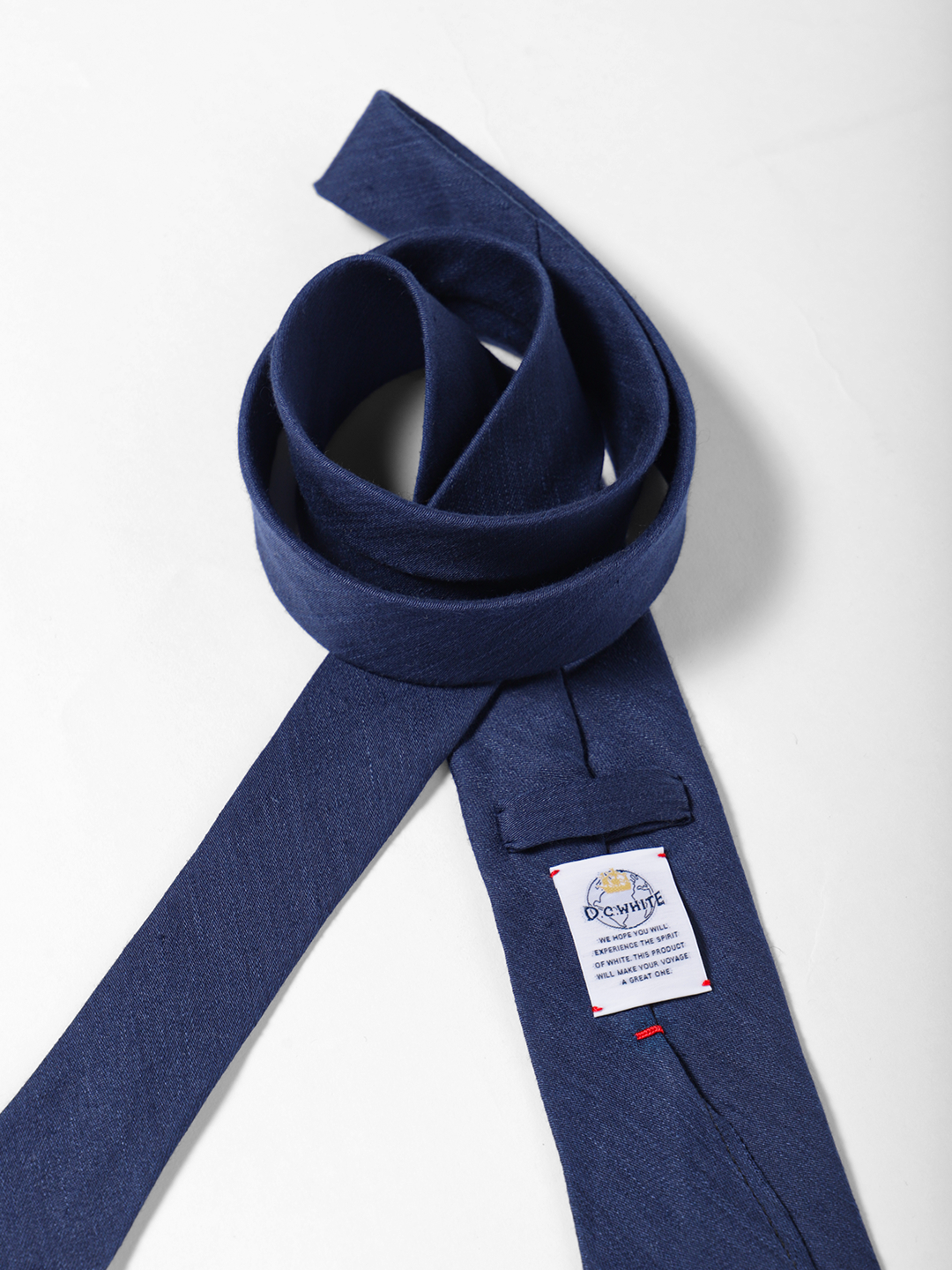 一般的なネクタイに見られる過度な補強を避けることで軽さと自然な立体感を両立しています。