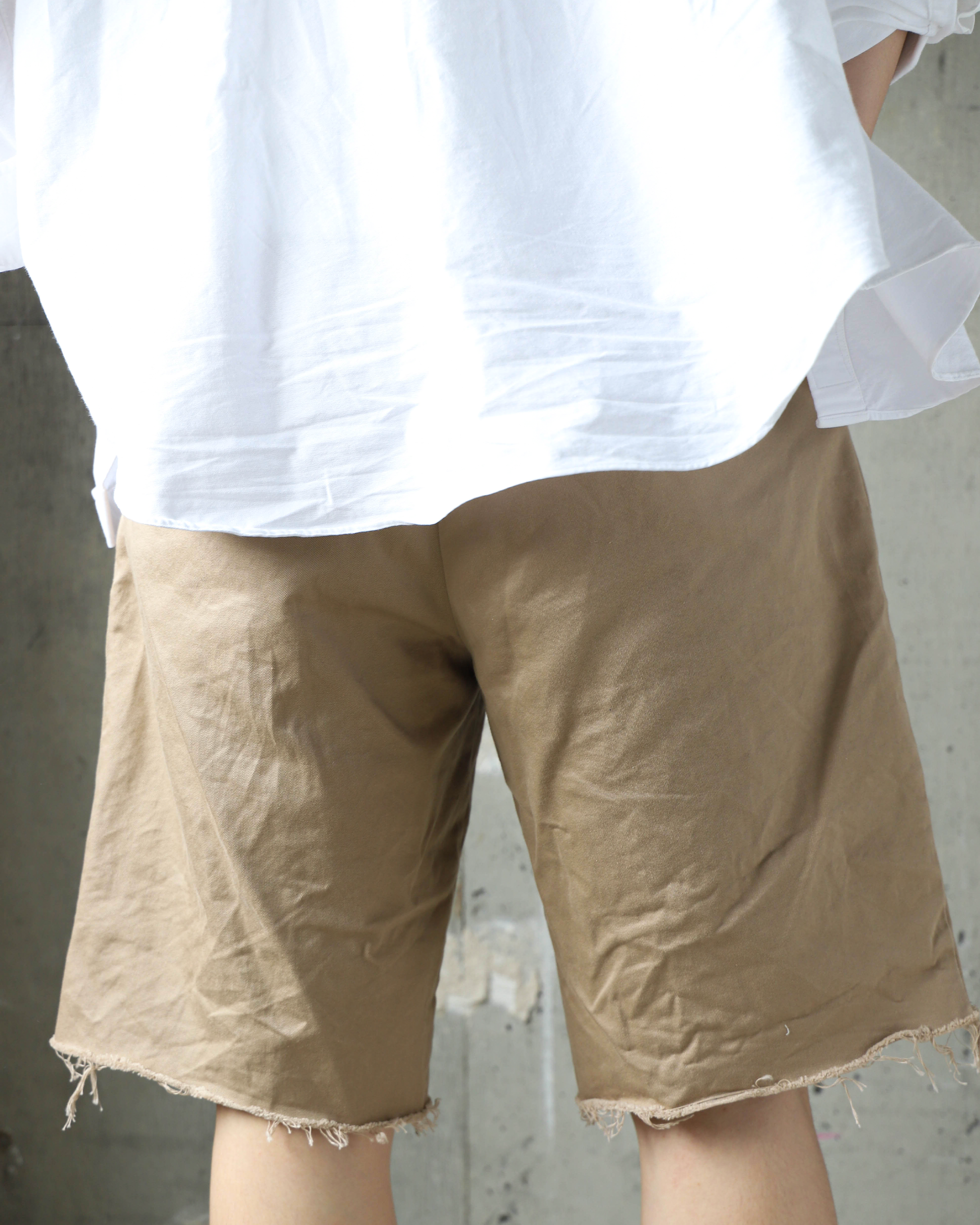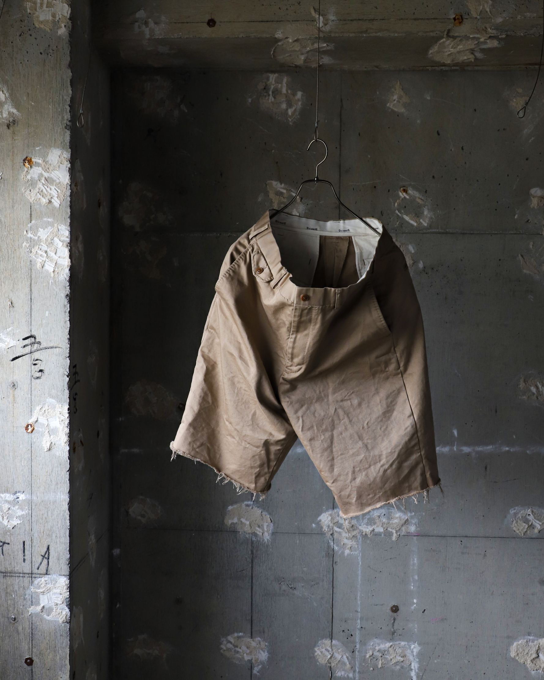 既に市場になく手に入ることのないデッドストックのウエポン素材を用いたカットオフショーツ。